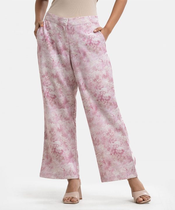 Pink Rayon-blend Wide-leg Trouser