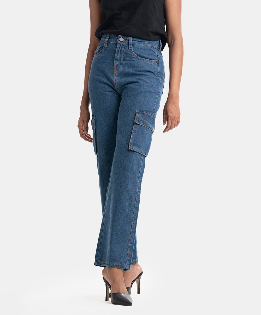 Blue High Rise Loose Cargo Jeans