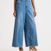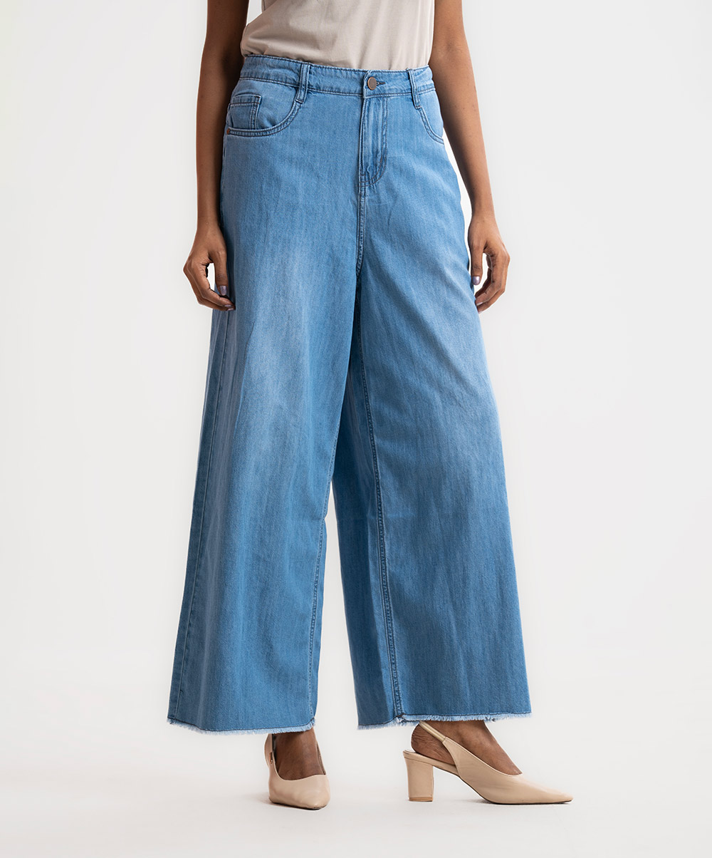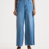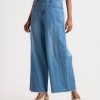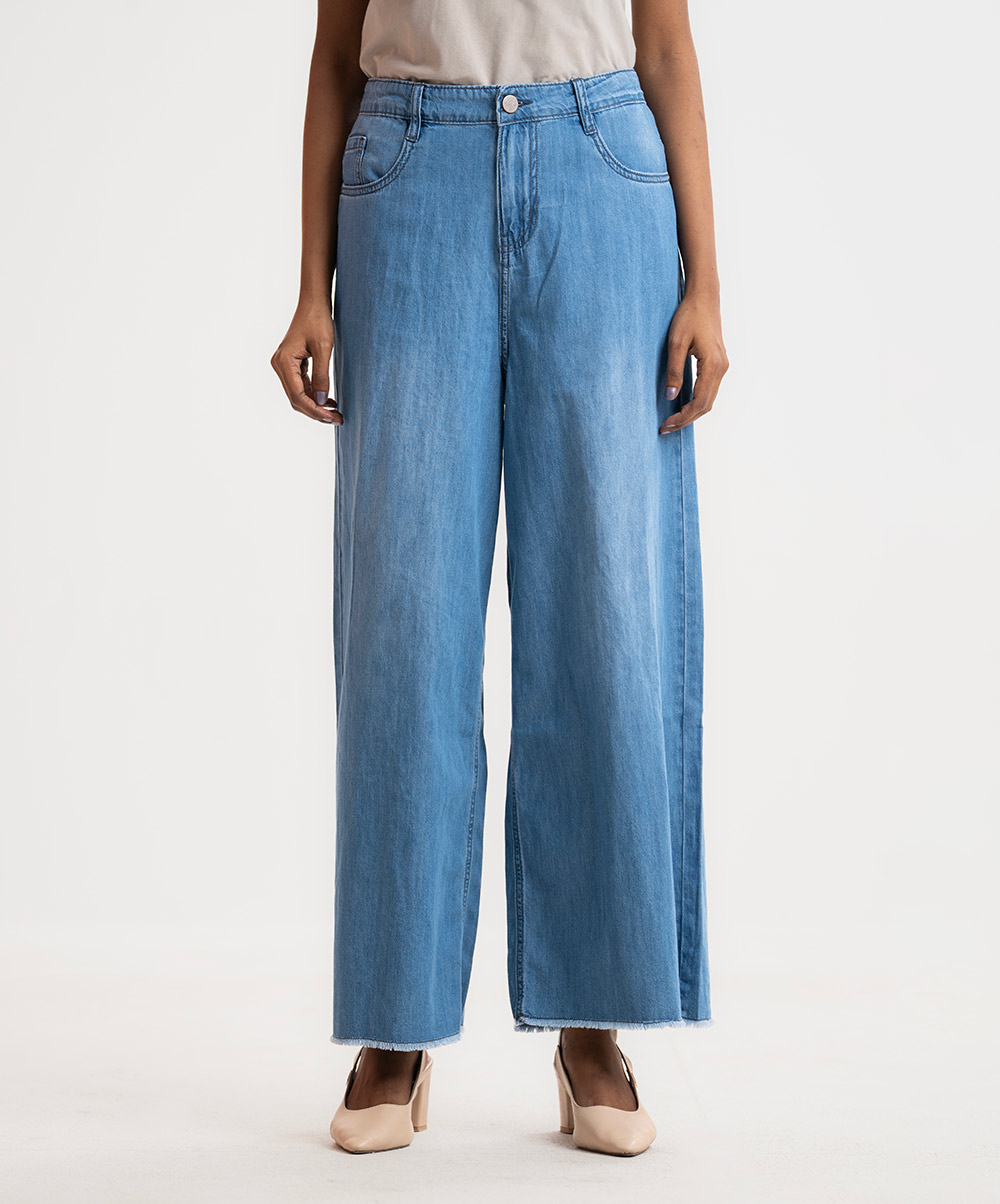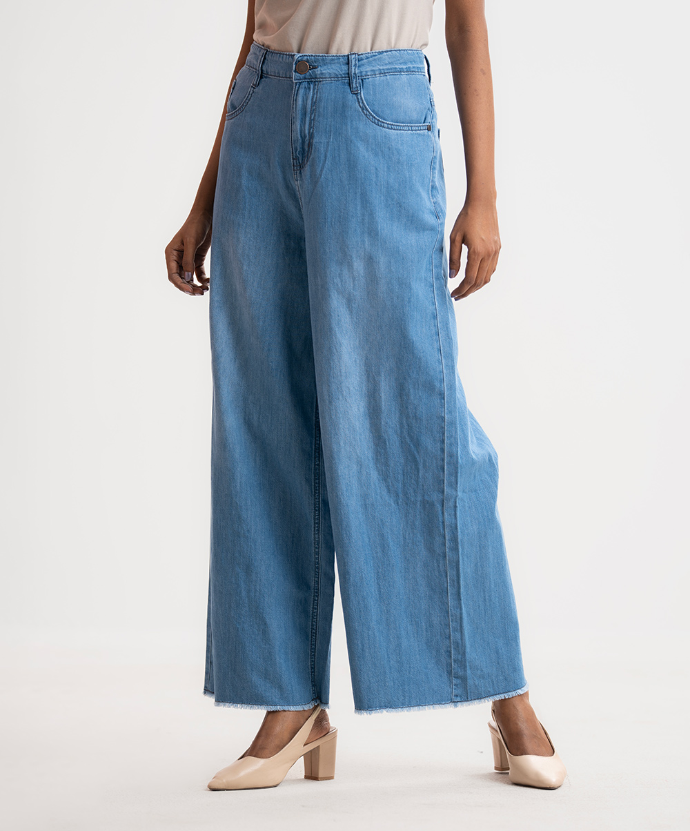 Women’s wide leg Baggy Jeans pants in Denim fabric. Five pockets and a zipper fly with a metal button.