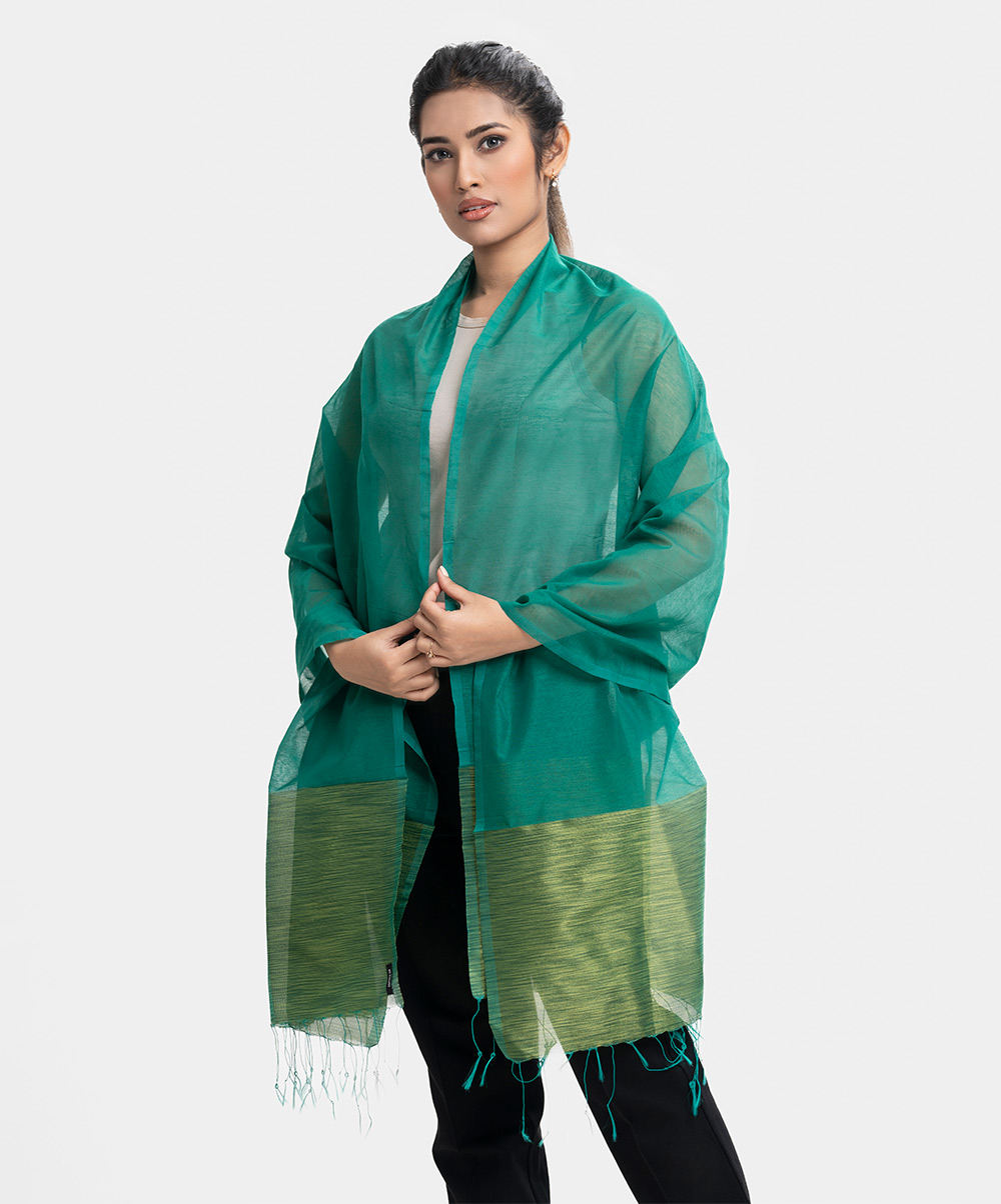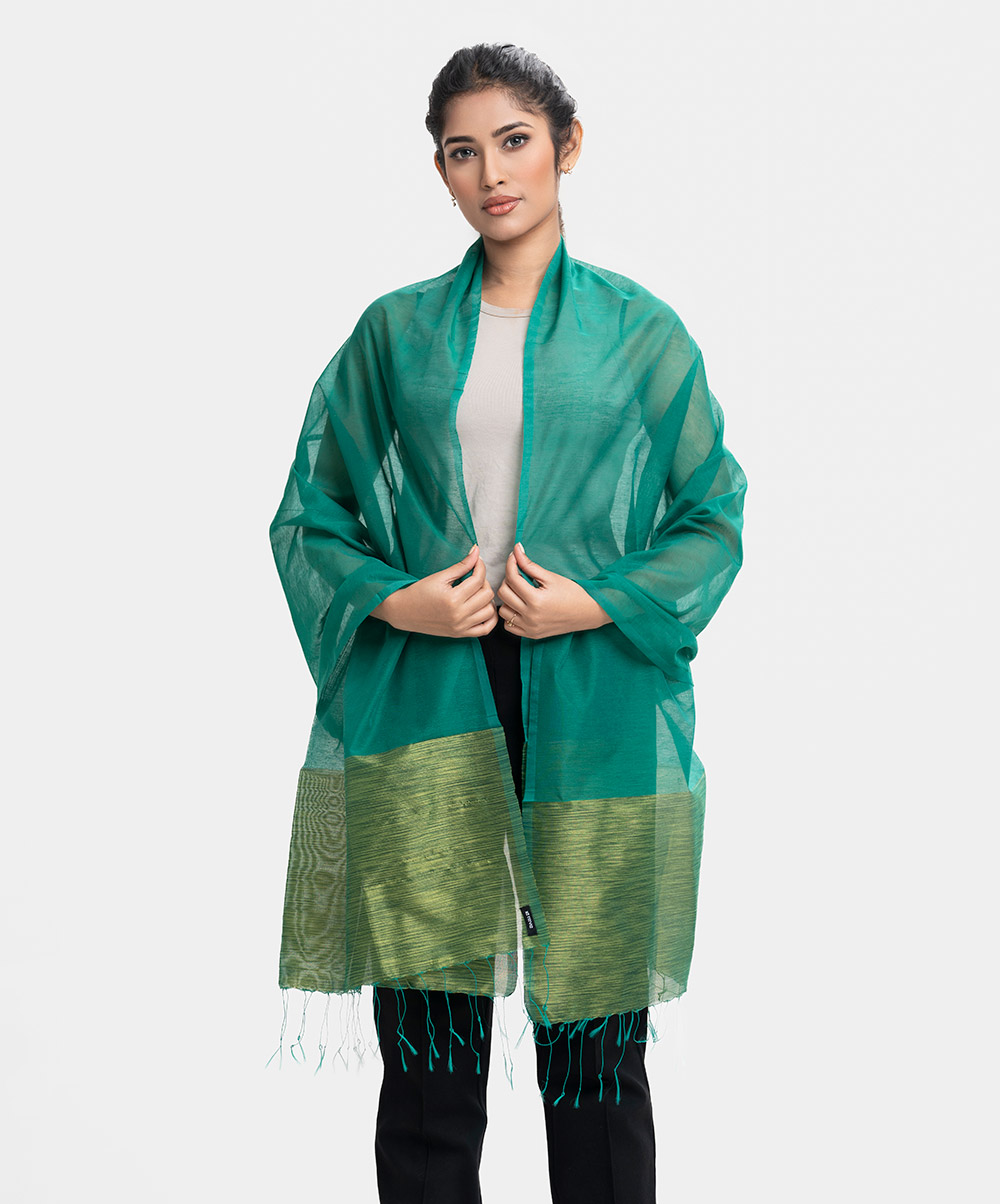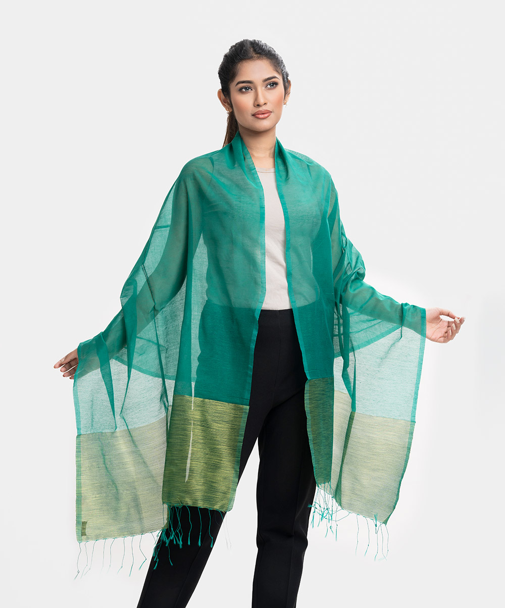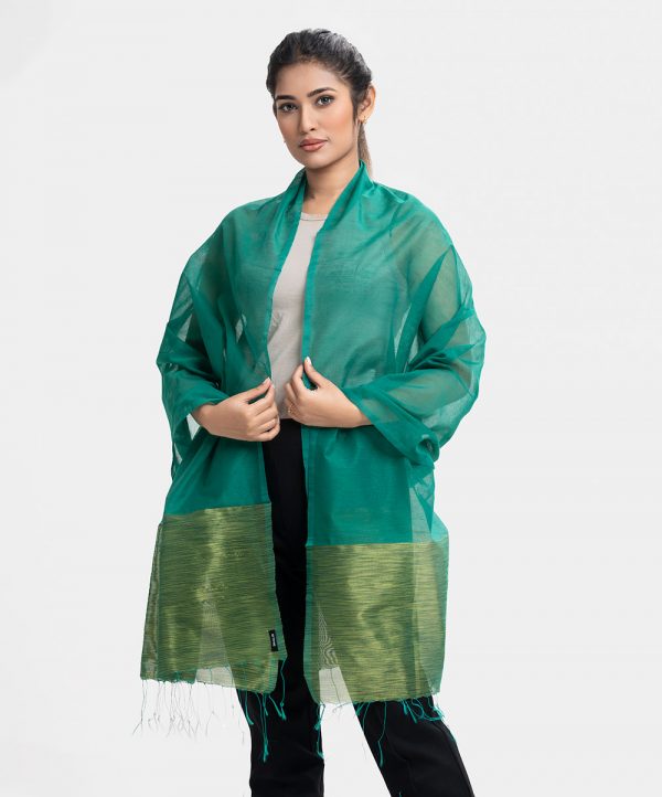 Women’s dupatta in half-silk fabric. Fringe trim at the border.