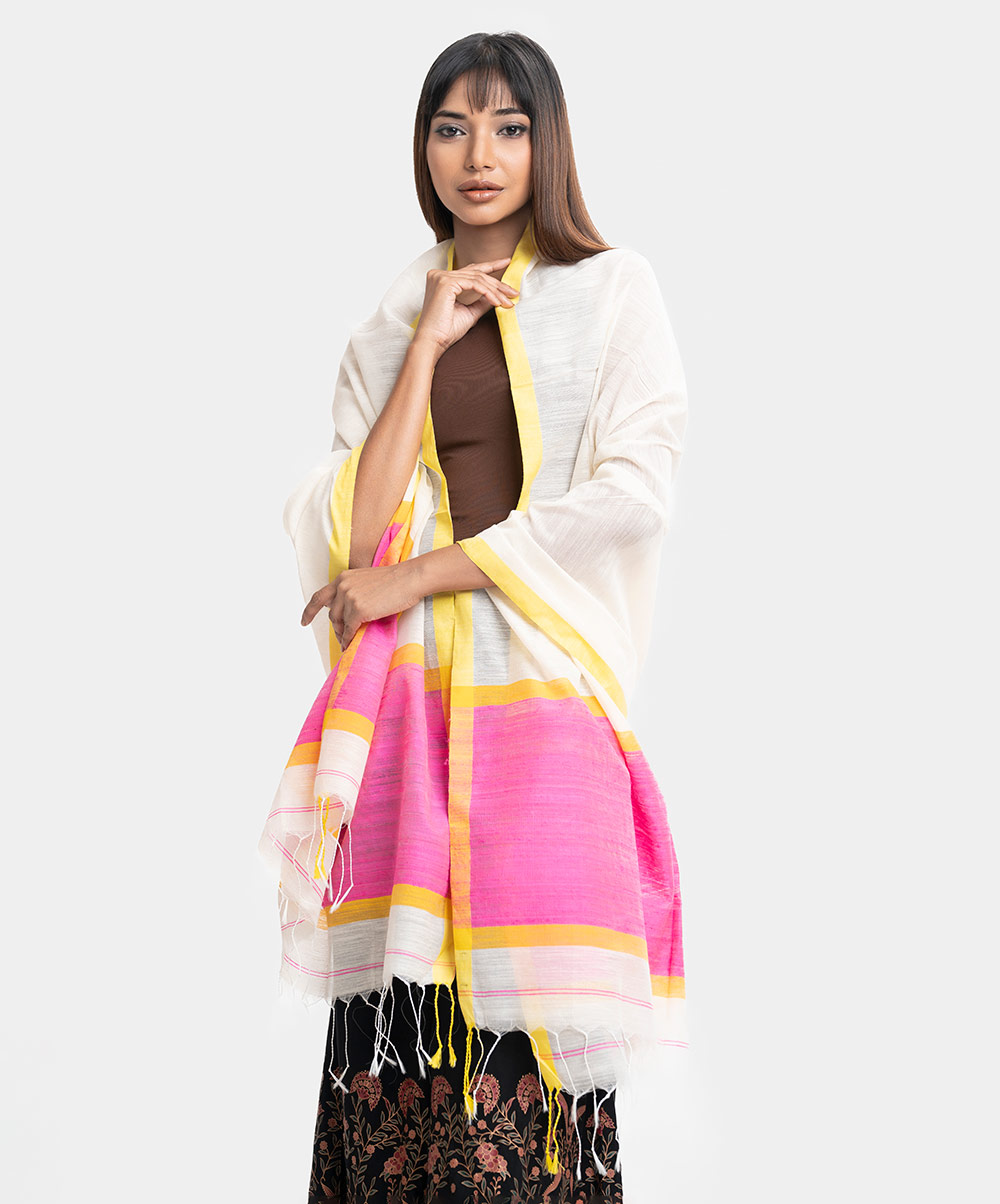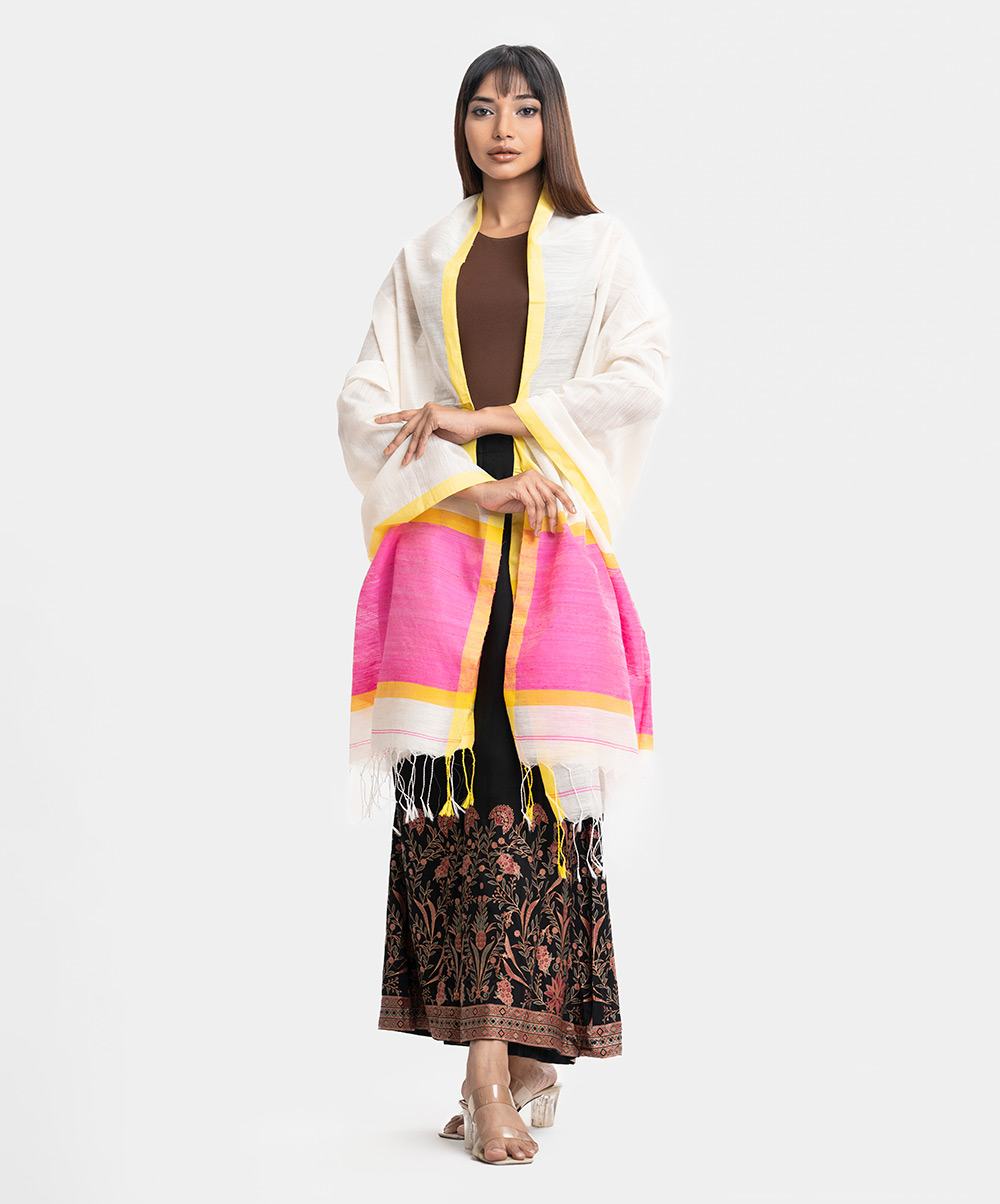 Women’s dupatta in half-silk fabric. Fringe trim at the border.