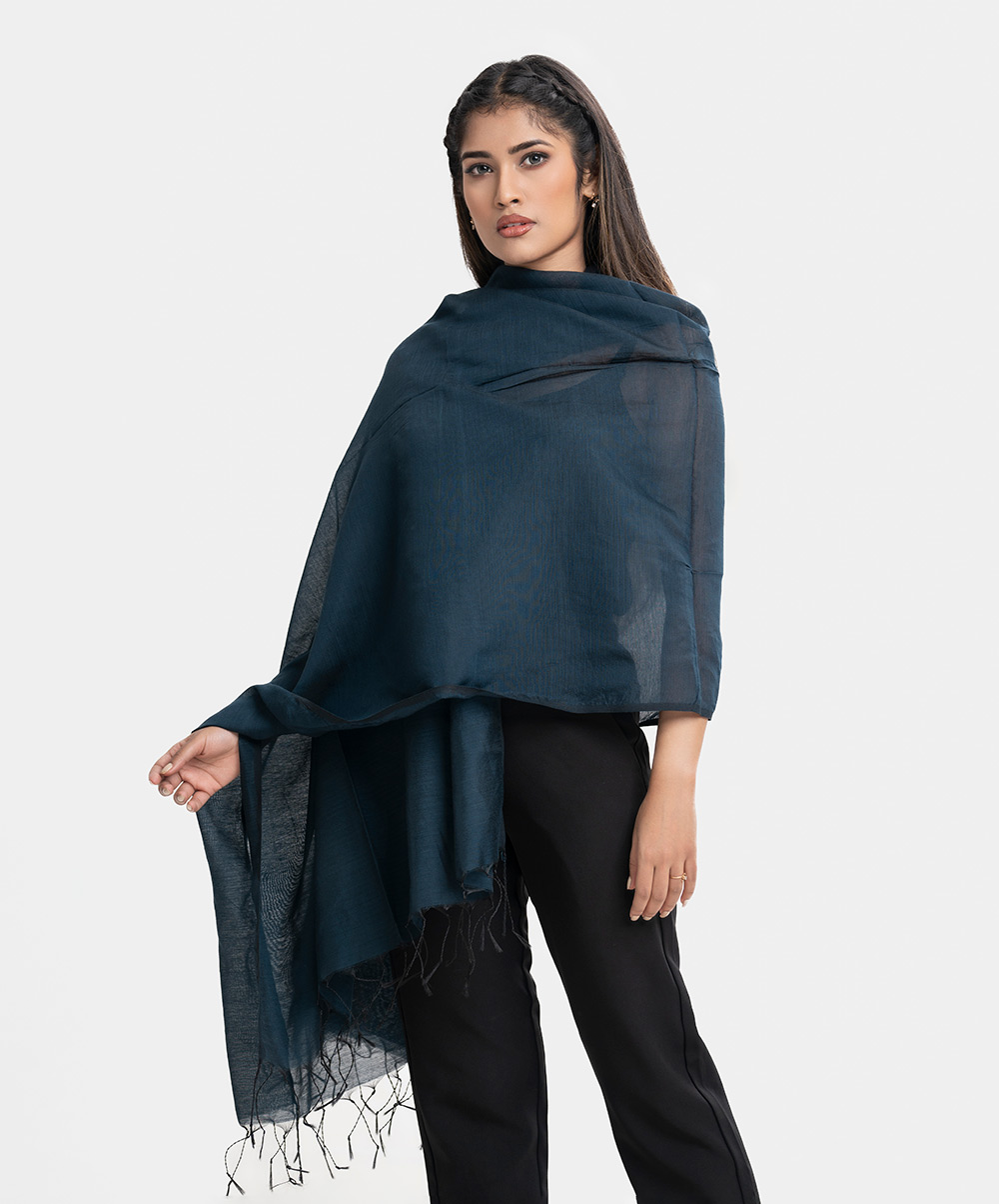 Women’s dupatta in half-silk fabric. Fringe trim at the border.