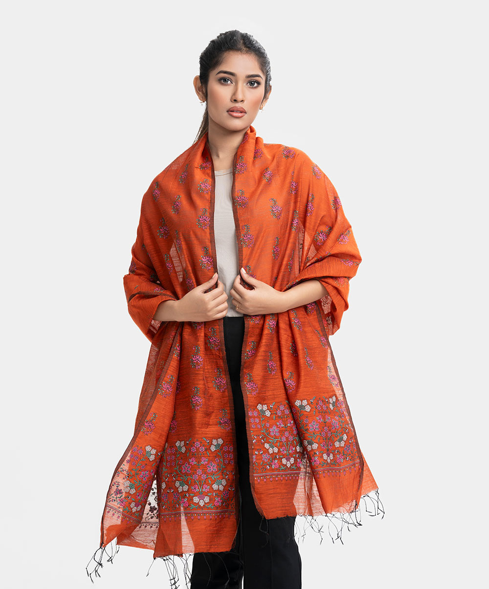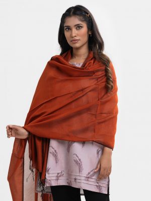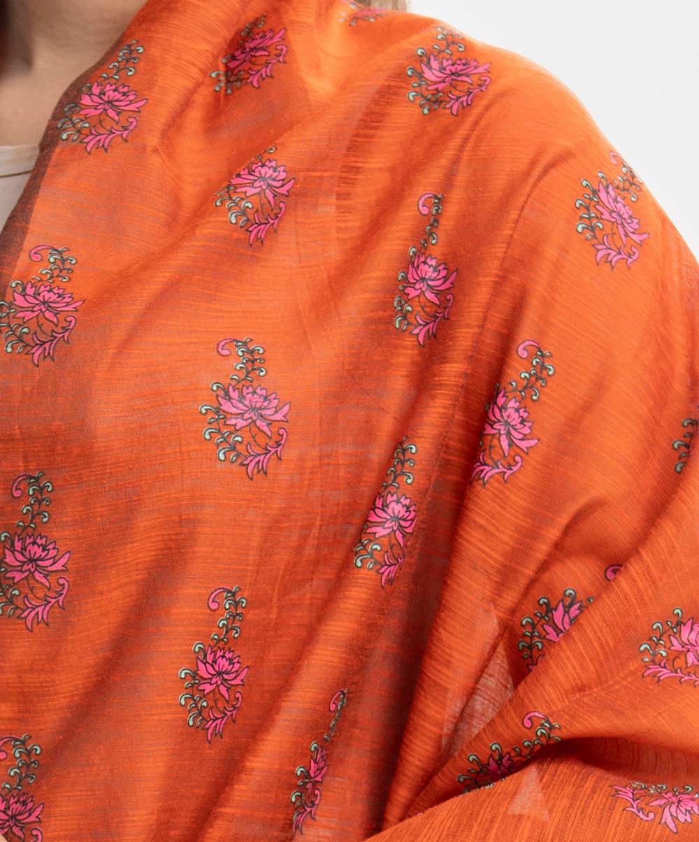 Women’s printed dupatta in half-silk fabric. Fringe trim at the border.