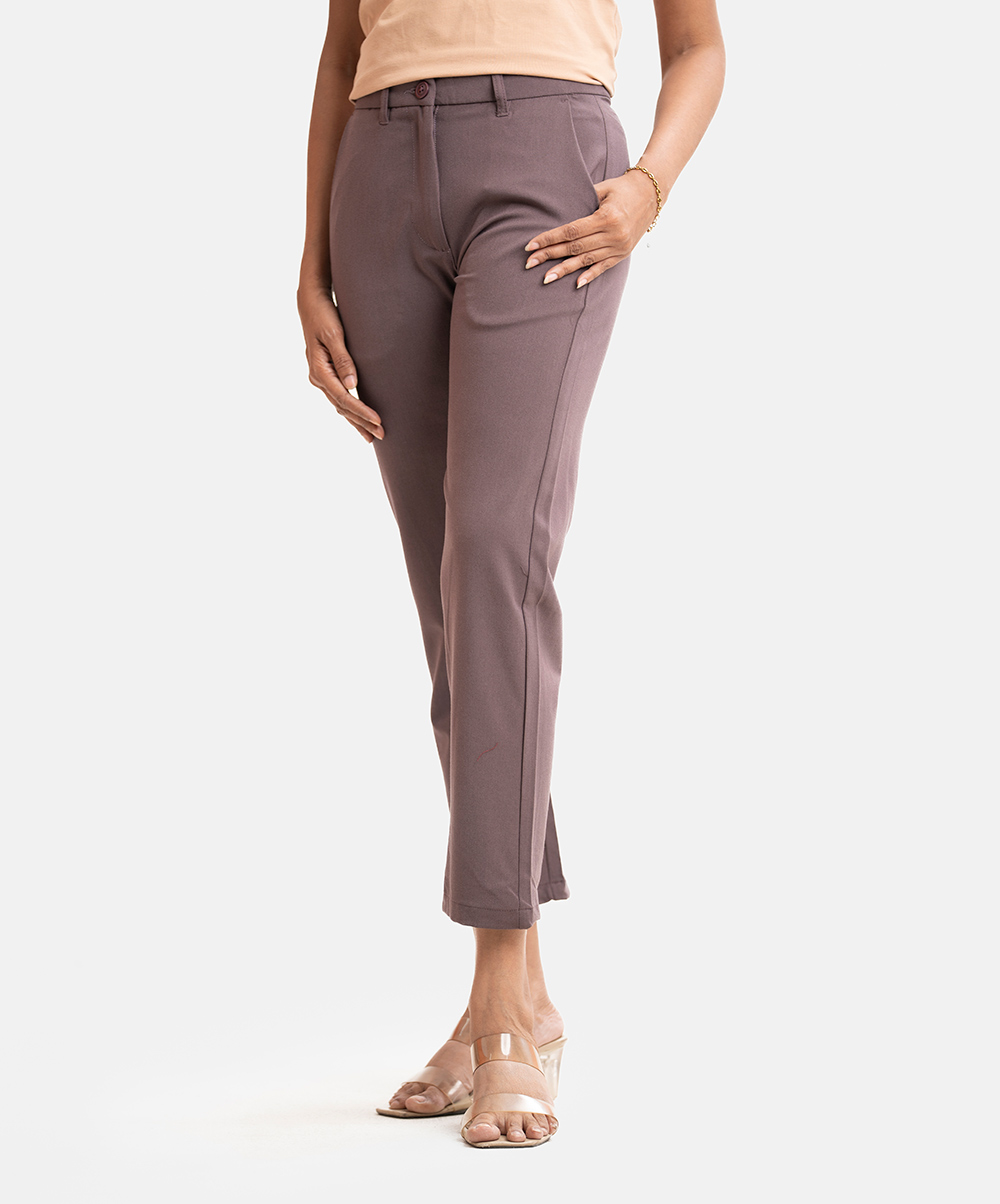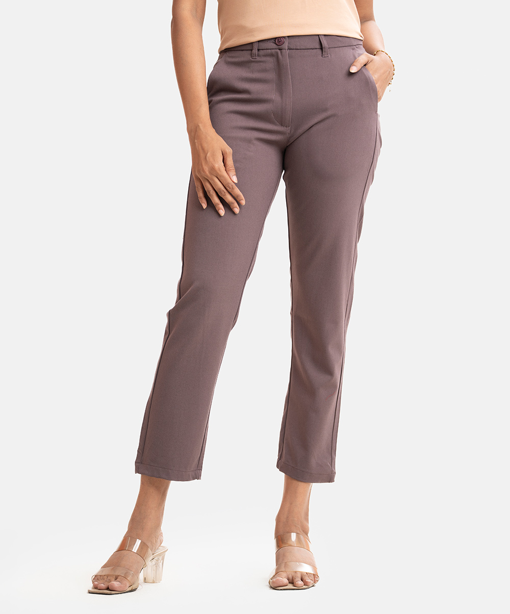 Women’s formal pants in stretched blended fabric. Conseal elastic waistline and two side pockets.