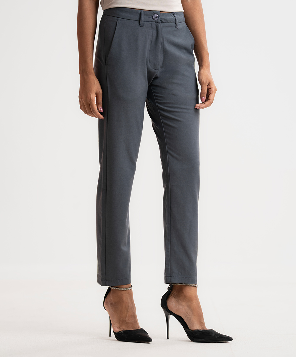 Women’s formal pants in stretched blended fabric. Conseal elastic waistline and two side pockets.