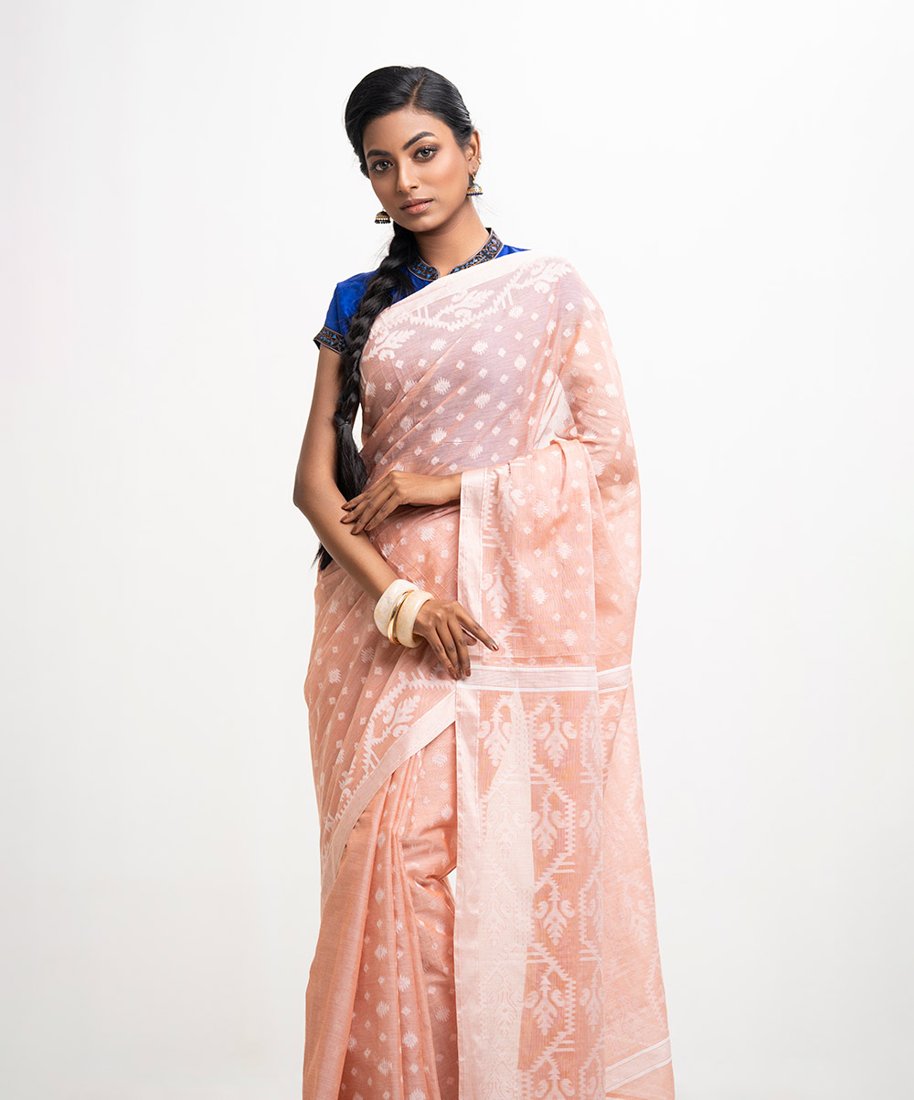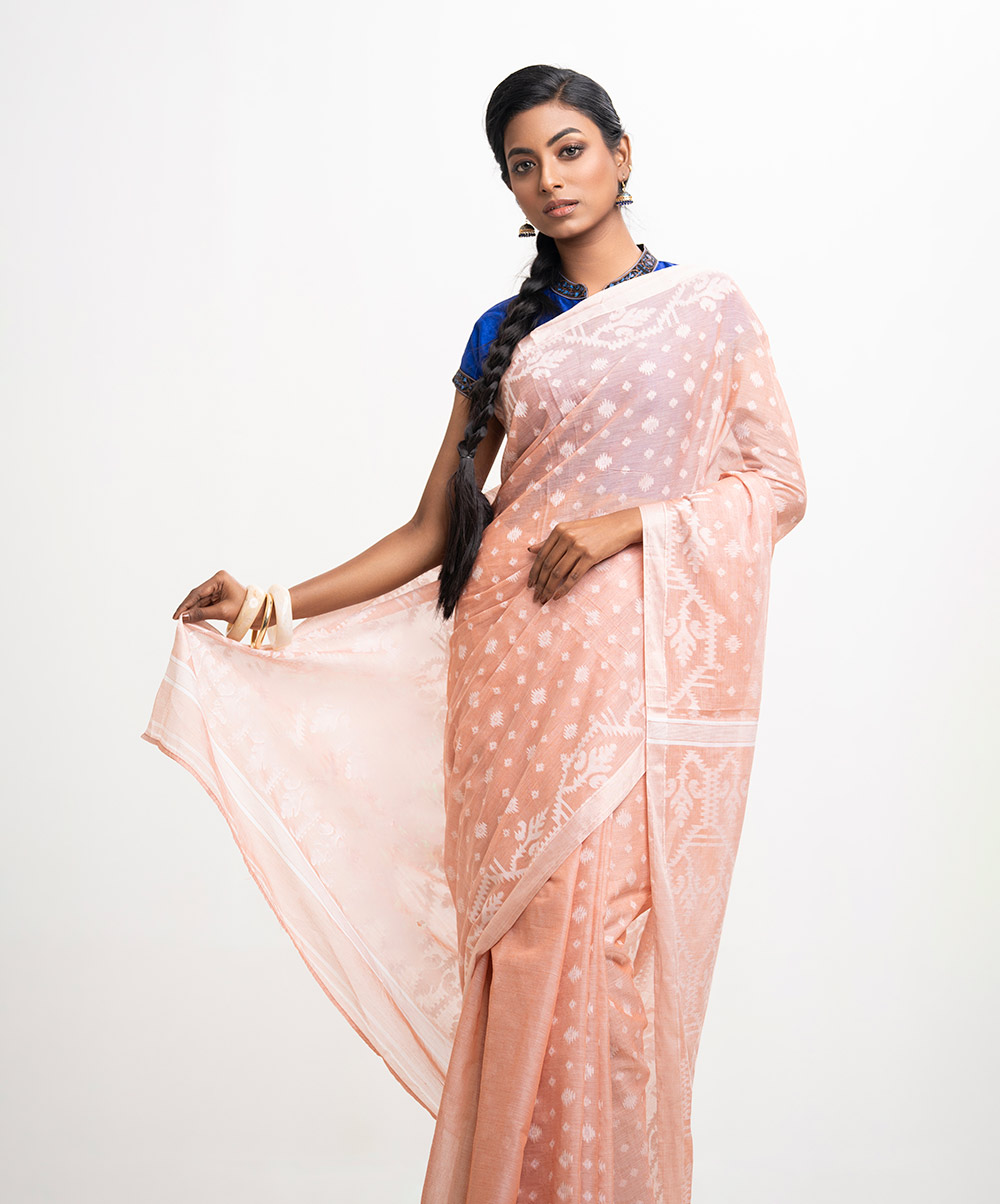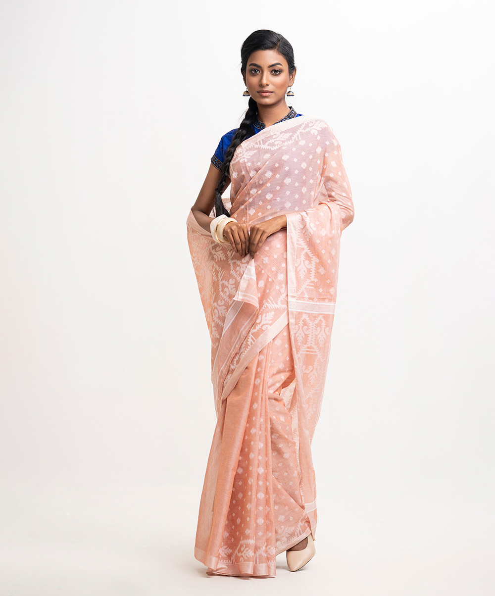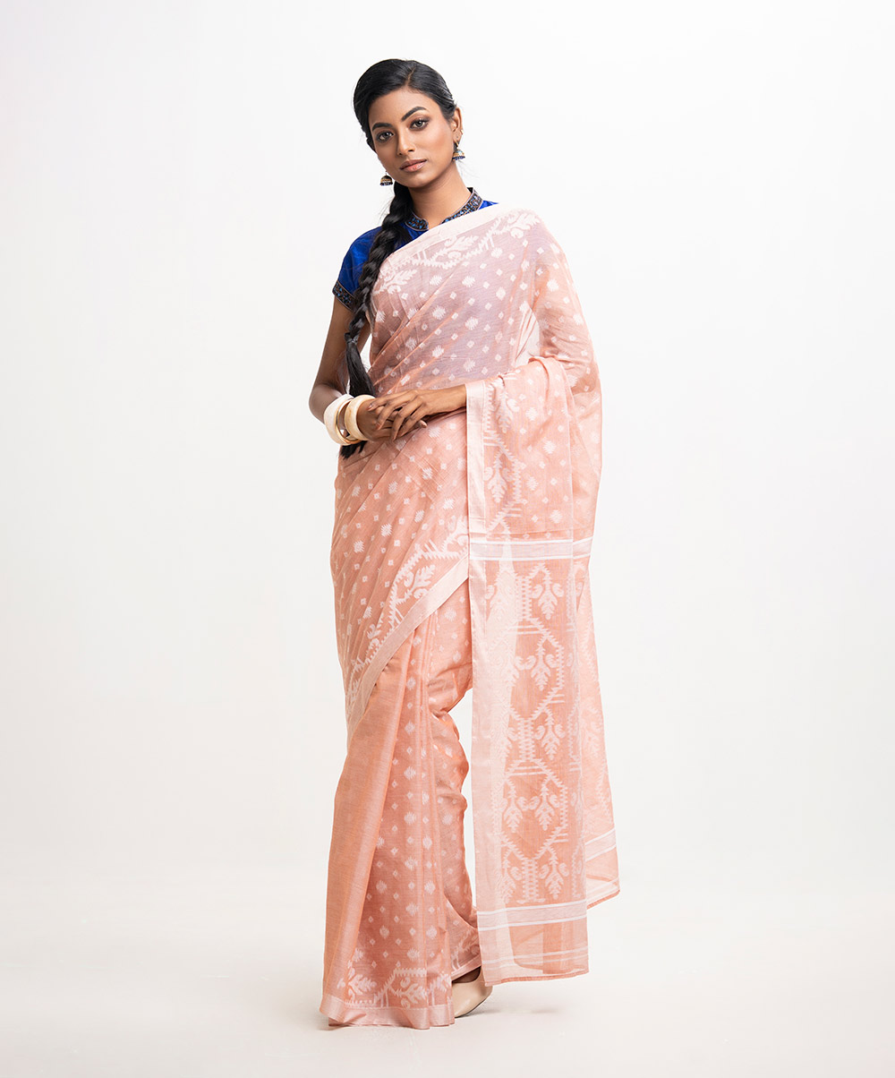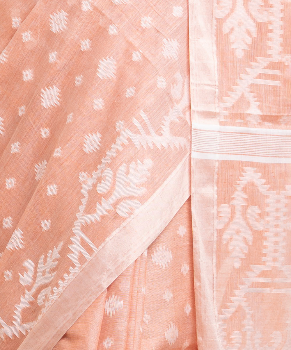 All-over Jamdani pattern weaving details saree in cotton fabric.