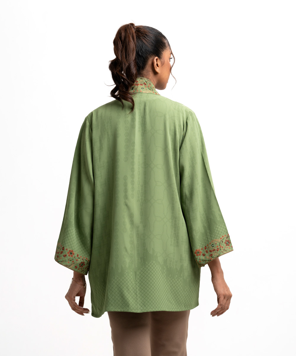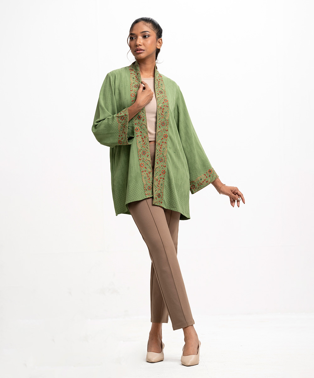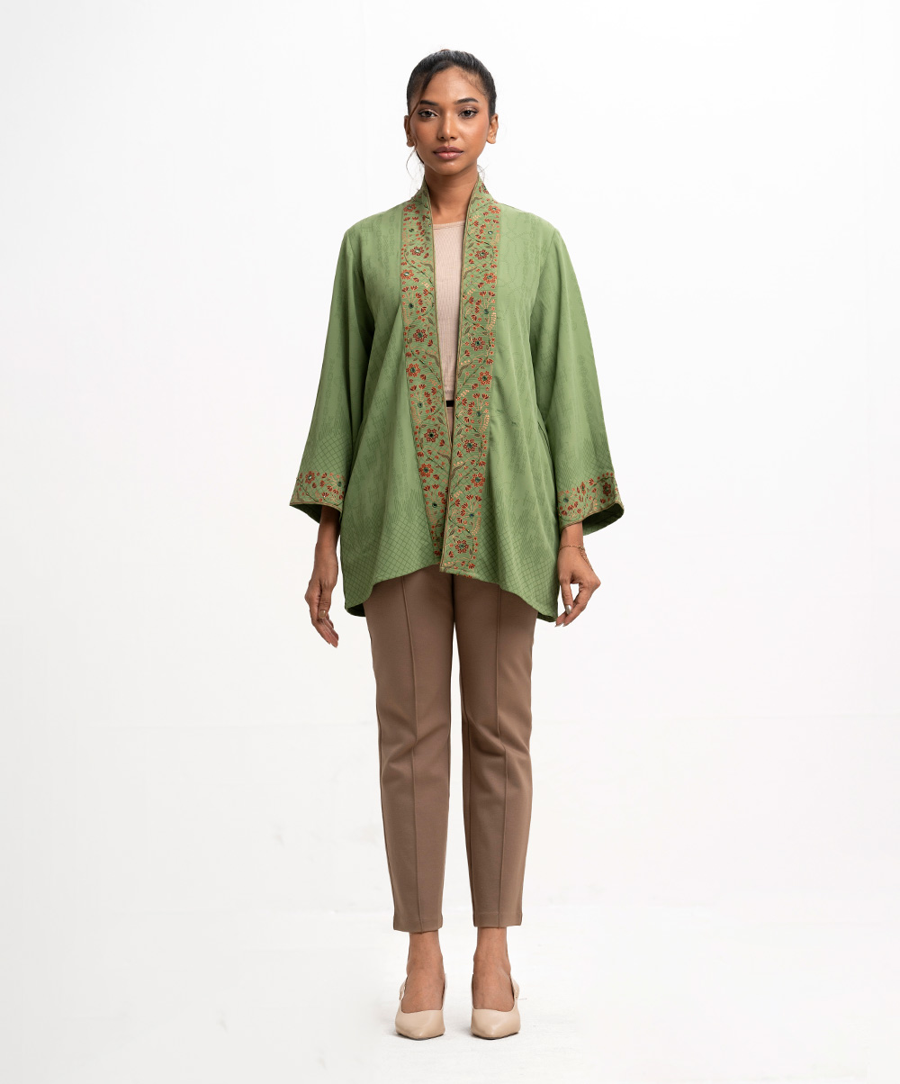 Green Tencel Open Front Jacket