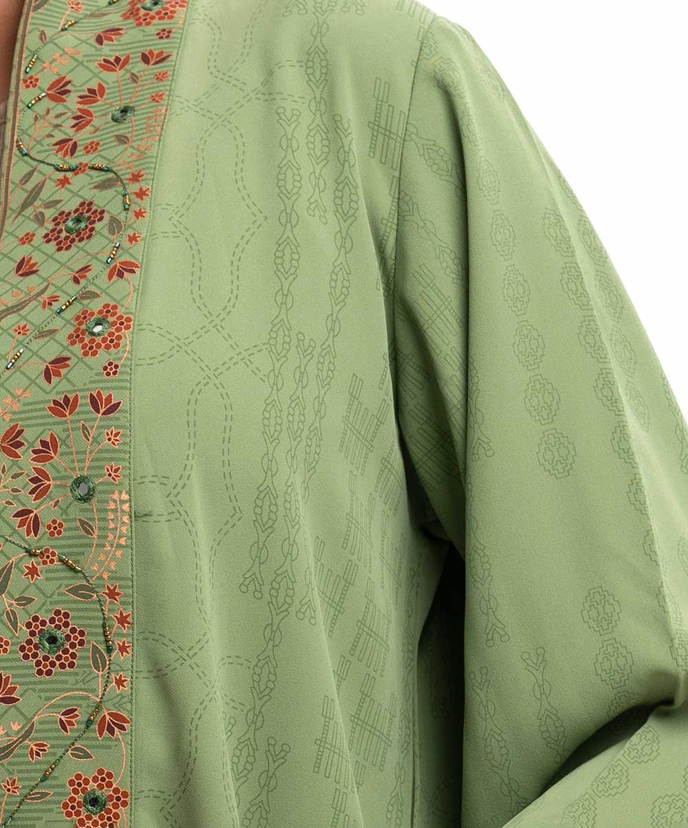 Women’s winter open front jacket in stretched tencel fabric. Full bell sleeves and inseam side pockets. Karchupi at front and sleeves.