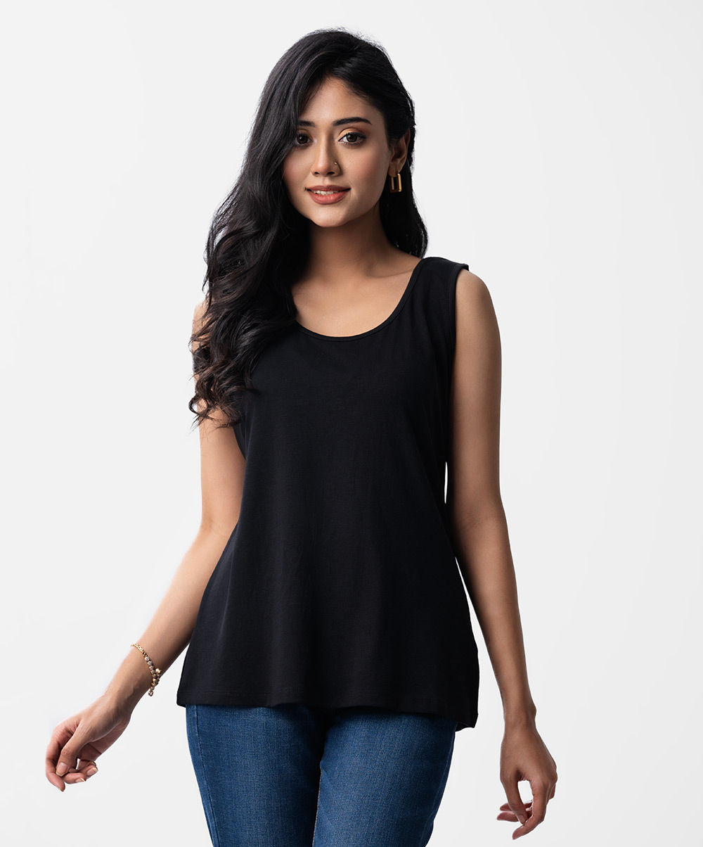 Women’s sleeveless and round neck camisole knit in cotton knit fabric.