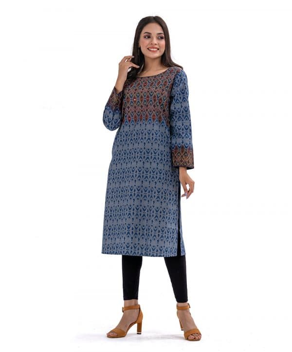 Blue Chambray Long Kameez