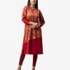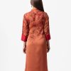 women’s printed straight kameez in crepe fabric. Mandarin Collar, three quarter sleeves, karchupi at the front.