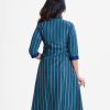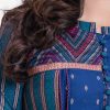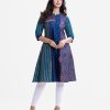 Women’s printed A-line kameez in crepe fabric. Stand collar, three-quarter sleeves. embroidery at the front.