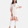 Women’s floral printed kameez in viscose fabric. Contrast patch on V-neck with line stitching and three-quarter sleeves.