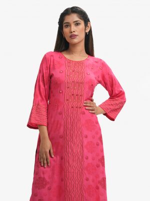 Pink Viscose Patterned Kameez