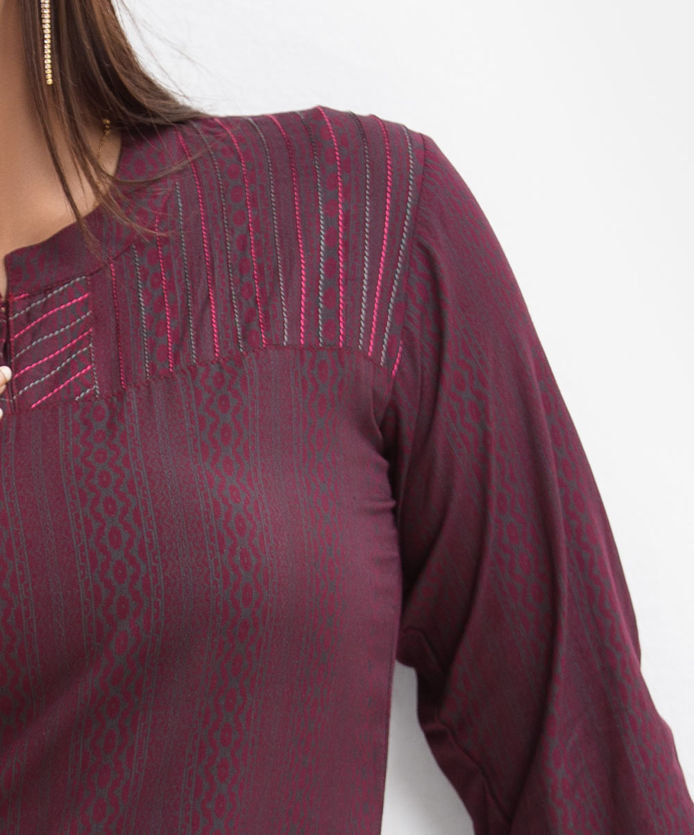 Burgundy Viscose A-line Kameez