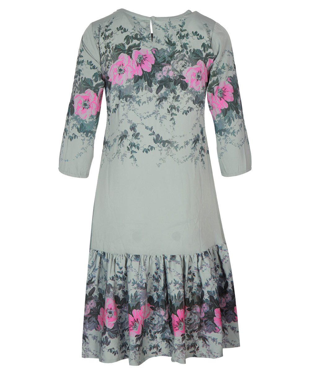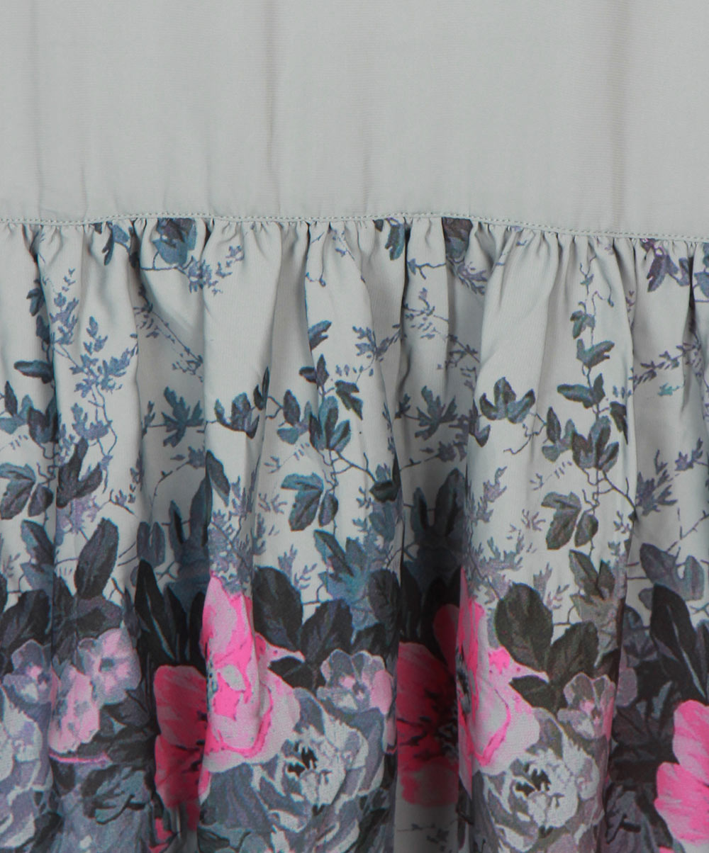 Floral printed shift tunic in georgette fabric. Embellished with flounce hem and gathered sleeves.