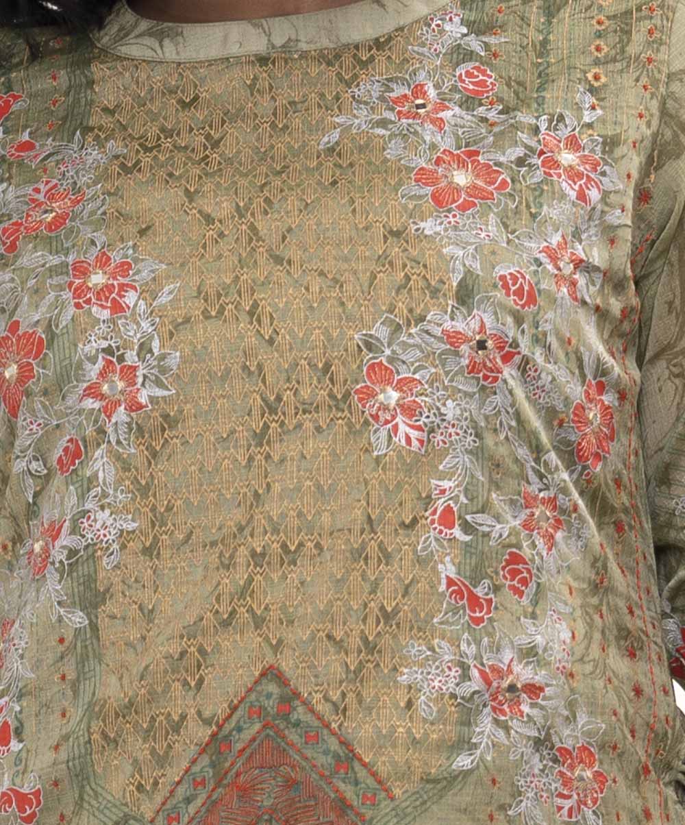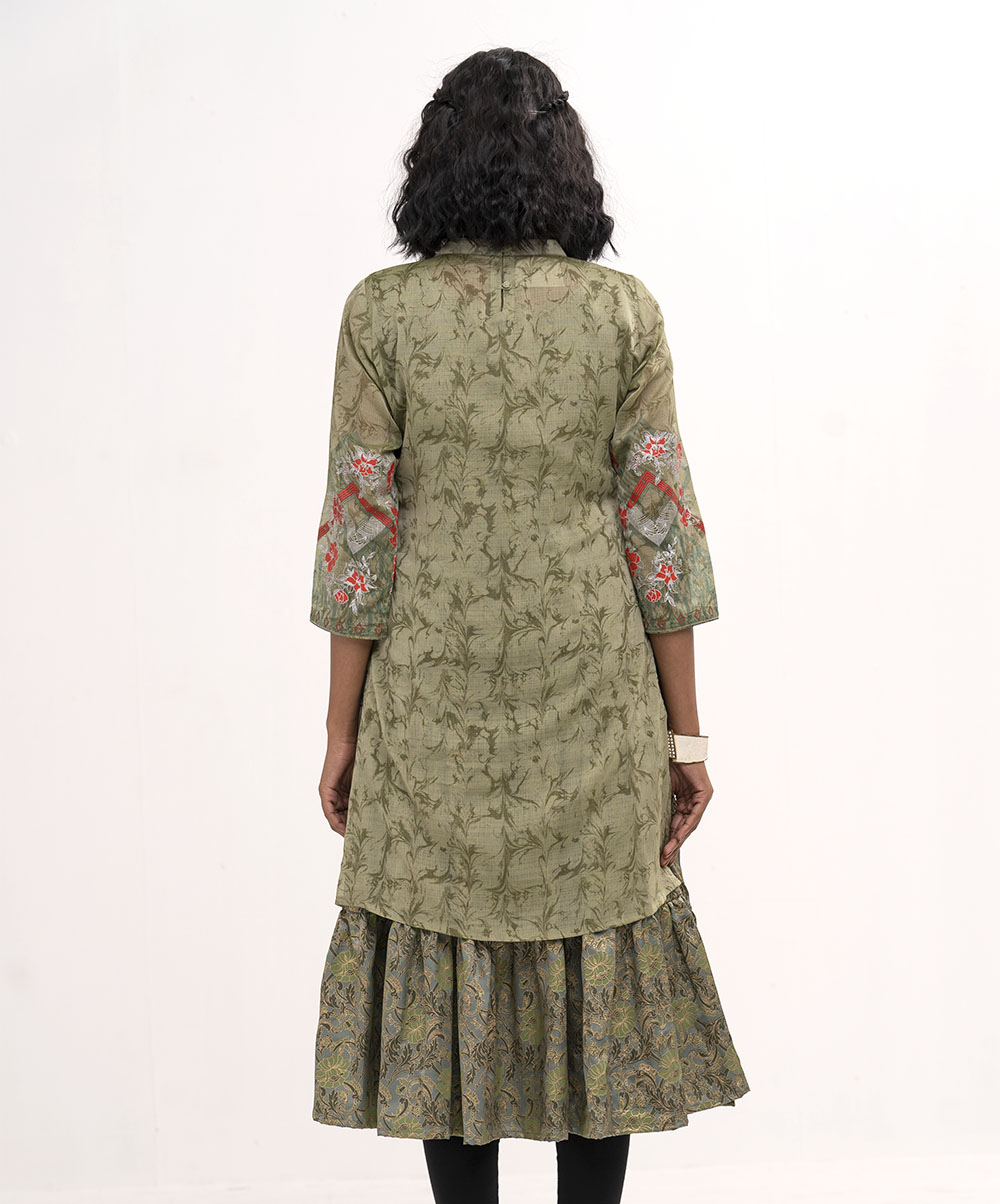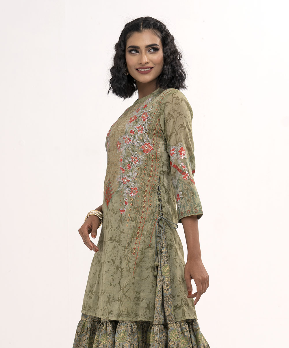 Green Georgette printed Long tunic with Embroidery
