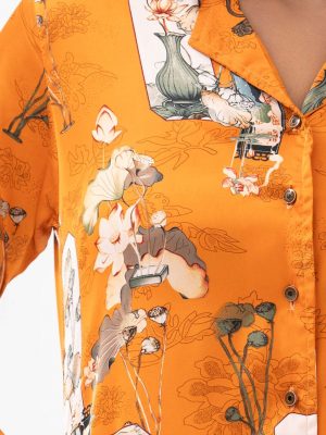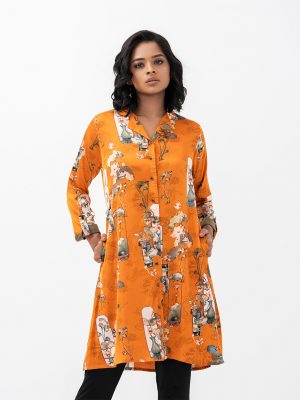 Women’s long tunic in viscose fabric. Roll-up sleeves, classic collar. Embroidery at the front.