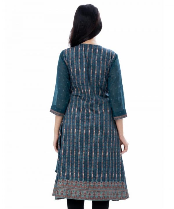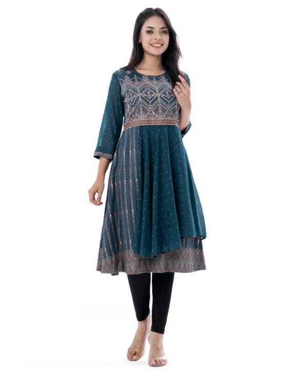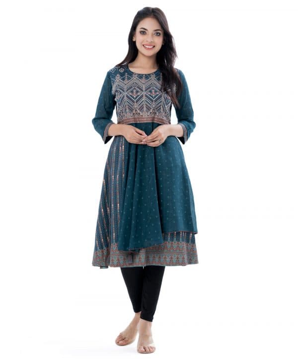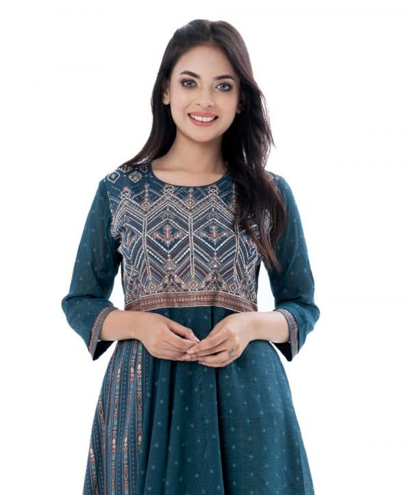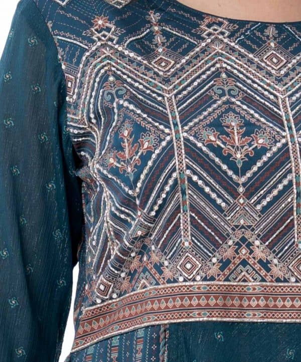 semi long tunic with karchupi on half body , round neck and 3 quarter sleeves