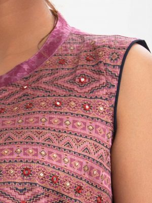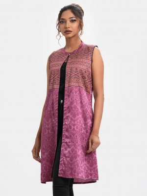 ladies kaftan style shrug work with screen print on georgette fabric