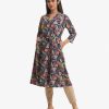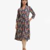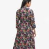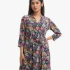 Women’s A-line Maxi in printed georgette fabric. Lapel collar, three-quarter sleeves. Buttons opening, waistbelt and inseam side pockets.