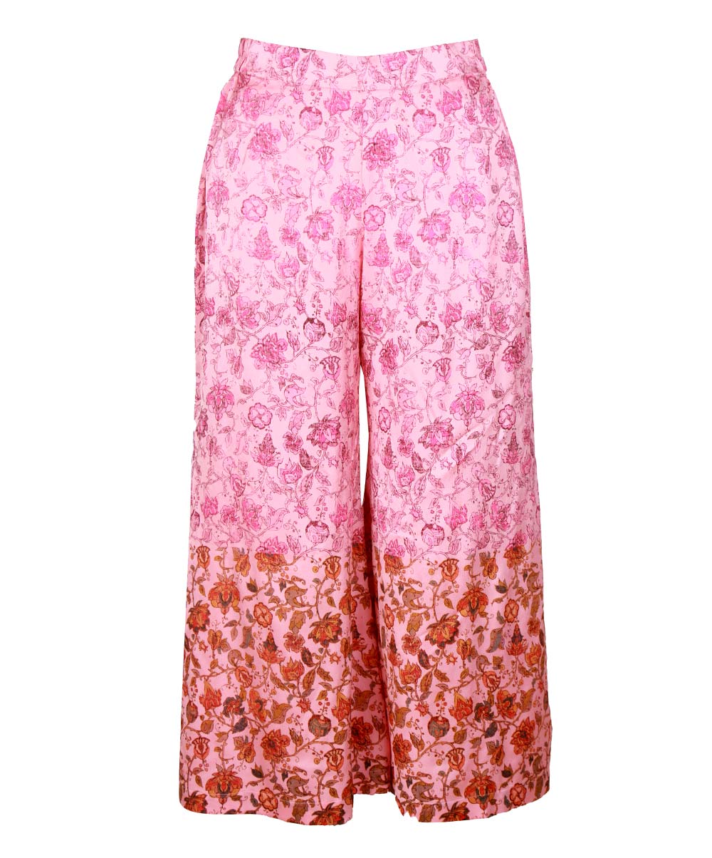 Pink all-over printed skirt Palazzo in crepe fabric.