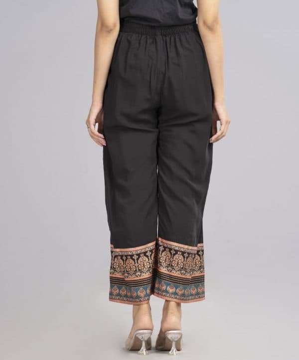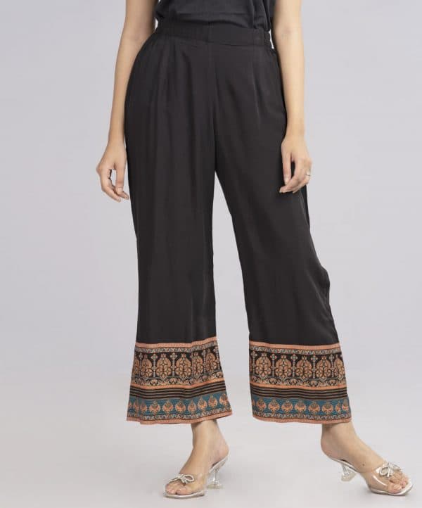 Black border printed regular Palazzo in Viscose fabric.