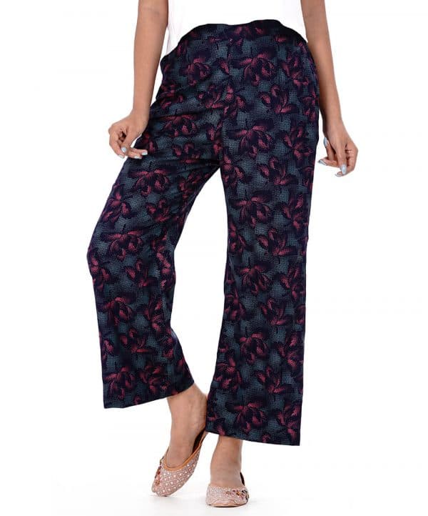 Black all-over printed Palazzo in Viscose fabric. Concealed elastication on the waistline