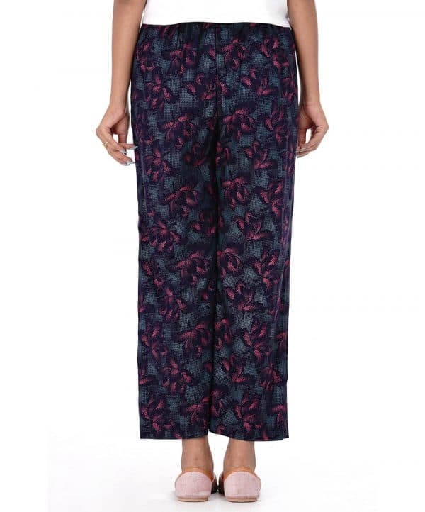 Black all-over printed Palazzo in Viscose fabric. Concealed elastication on the waistline