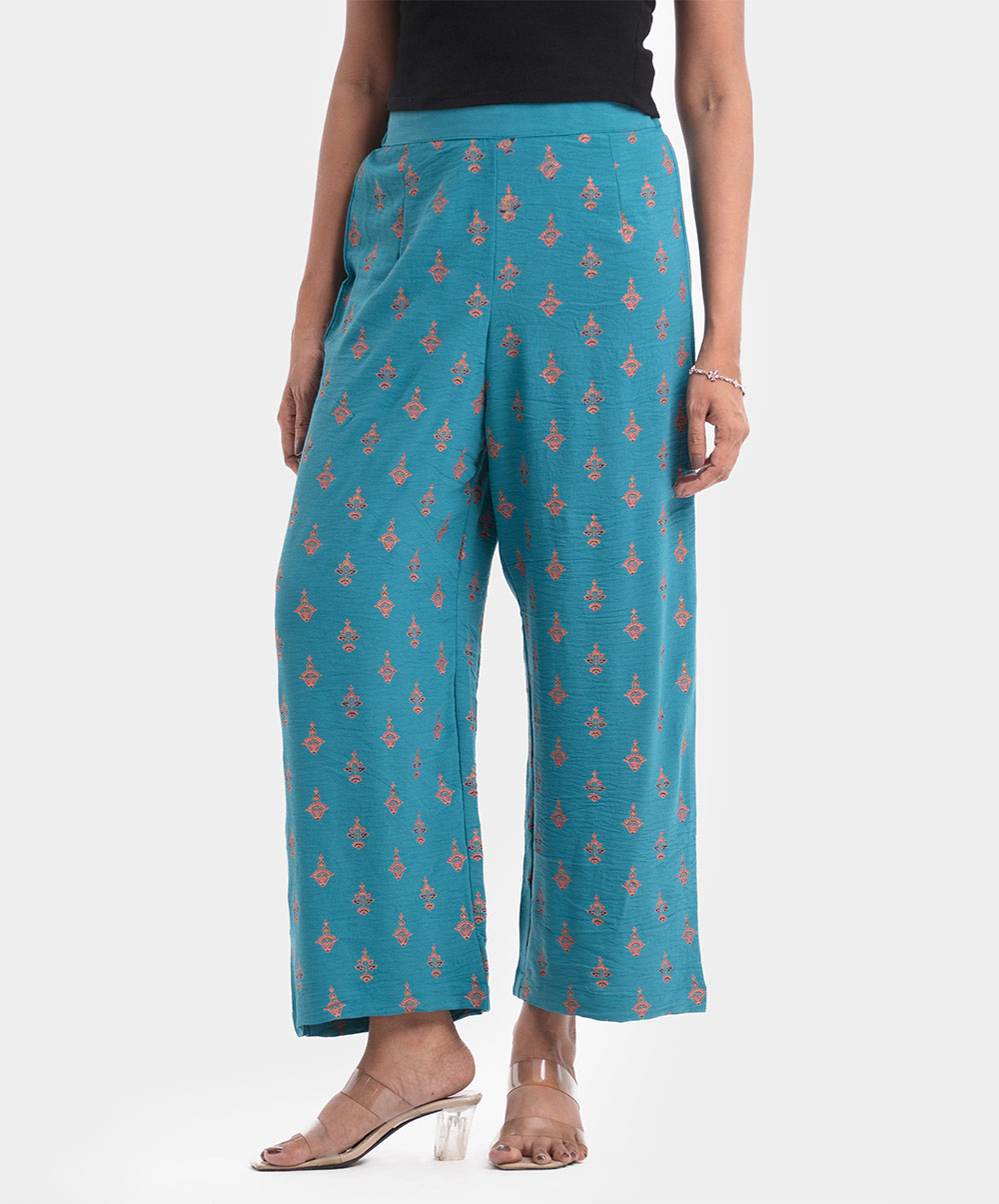 Women’s printed palazzo in stretchable georgette fabric. Concealed elasticated waistline.