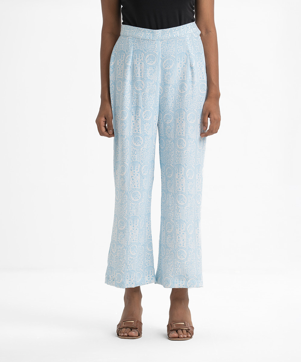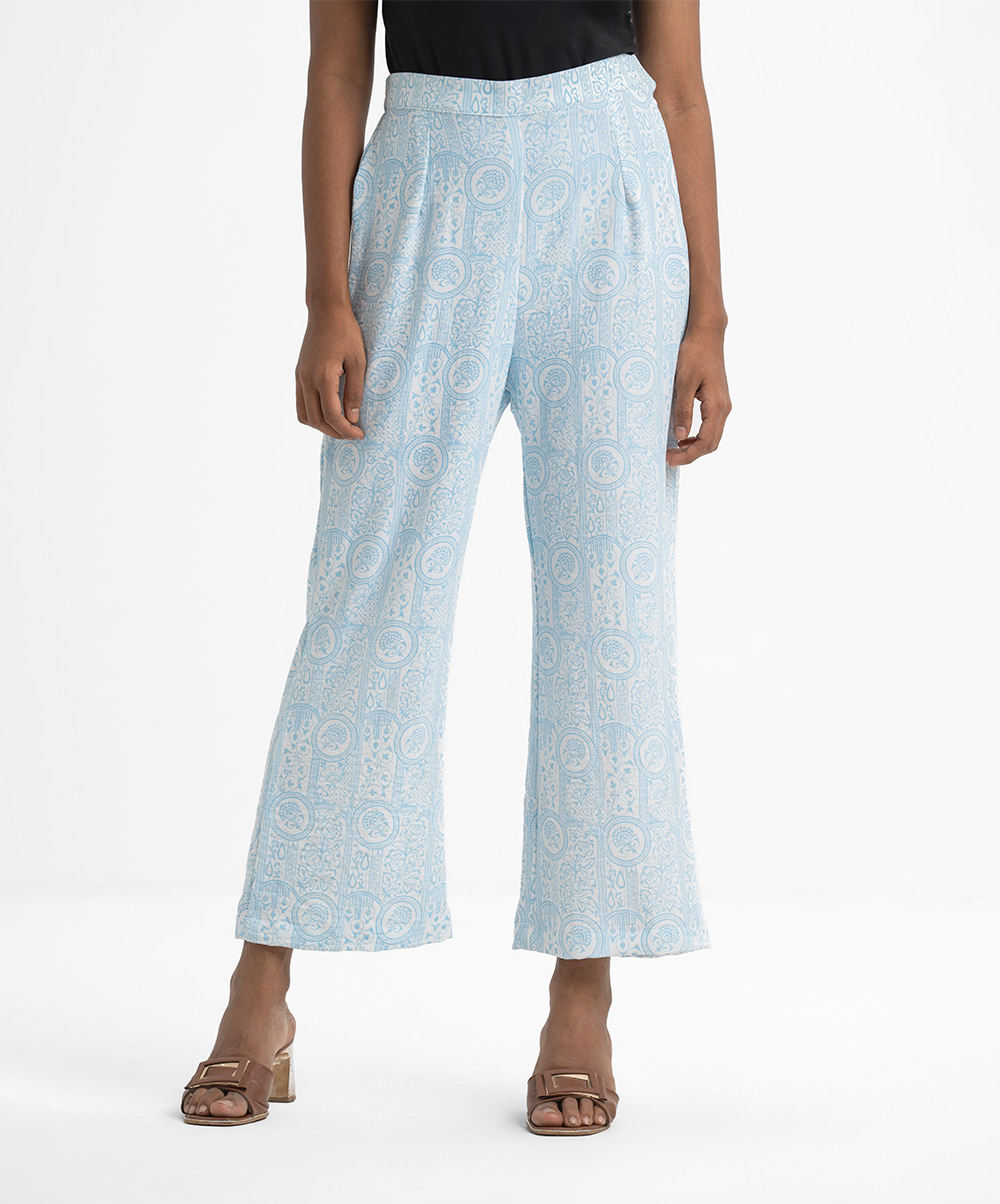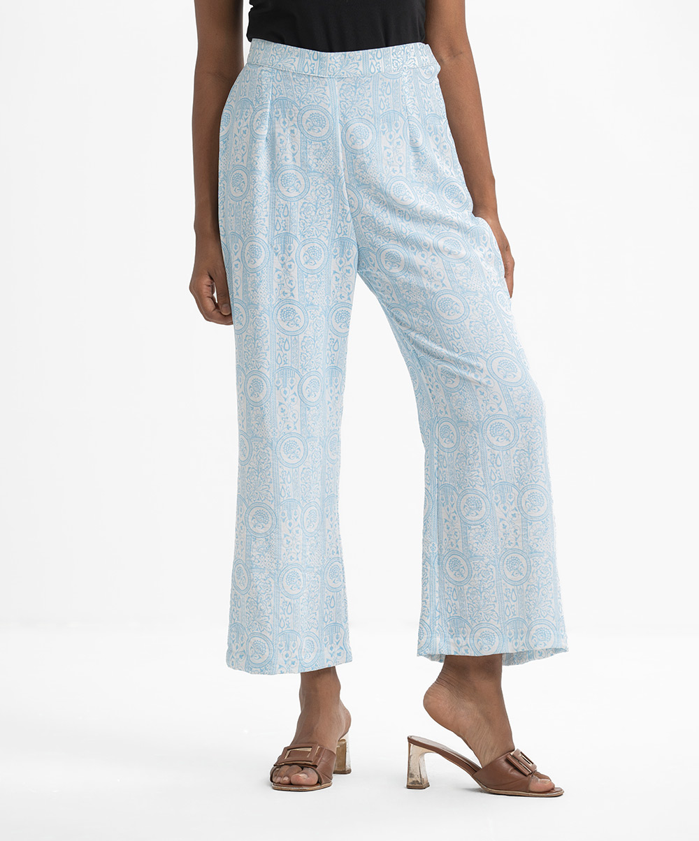 Women’s printed palazzo in stretchable georgette fabric. Concealed elasticated waistline.