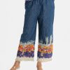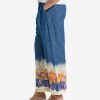 Women’s printed palazzo in denim fabric. Concealed elasticated waistline and two side pockets.