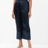 Women’s palazzo in crepe fabric. Concealed elasticated waistline. Printed detail at the ankle.