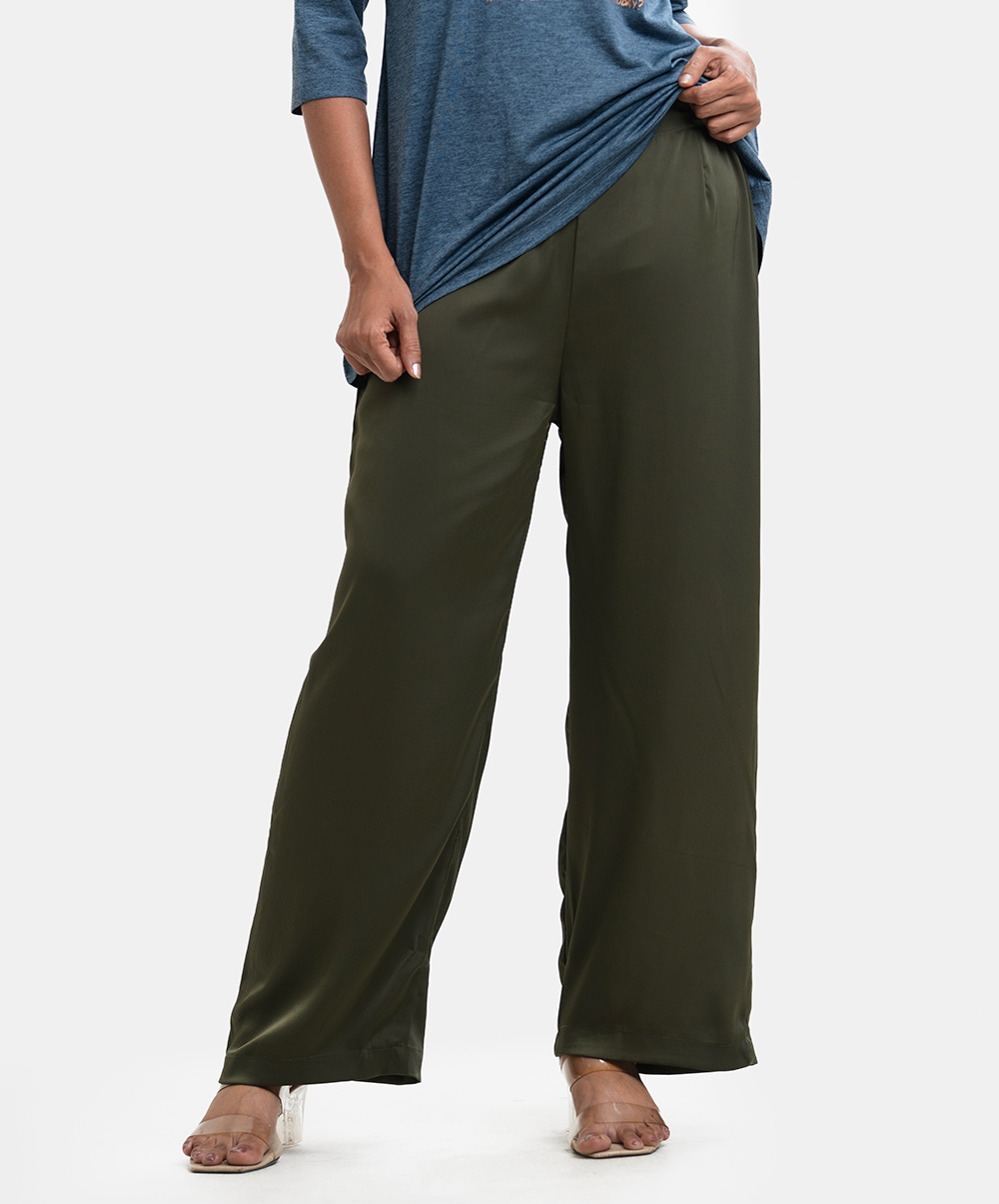 Women’s regular palazzo in joom fabric. Concealed elasticated waistline.