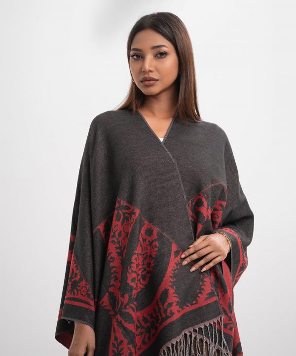 Black & Red Woolen Poncho