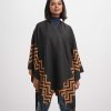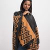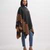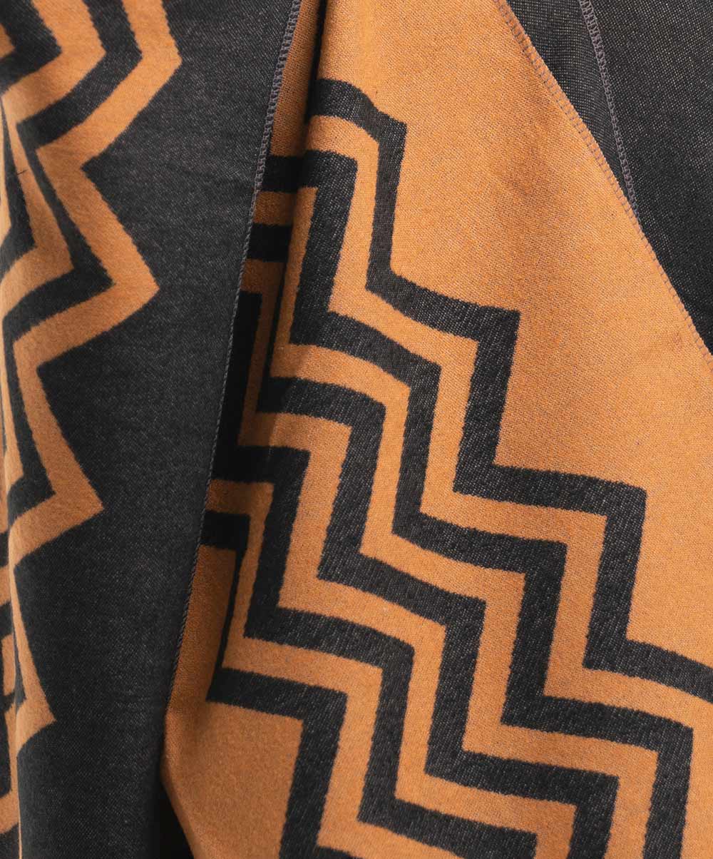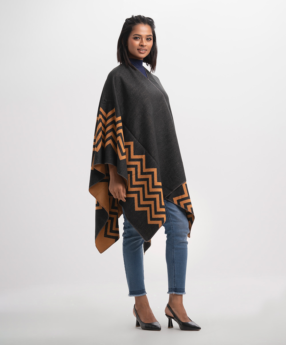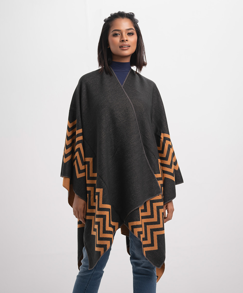 Women’s triangle-shaped chevron pattern winter poncho in woolen fabric.