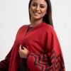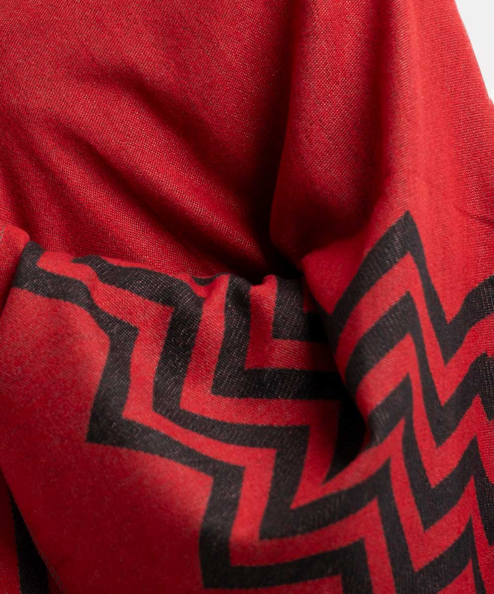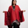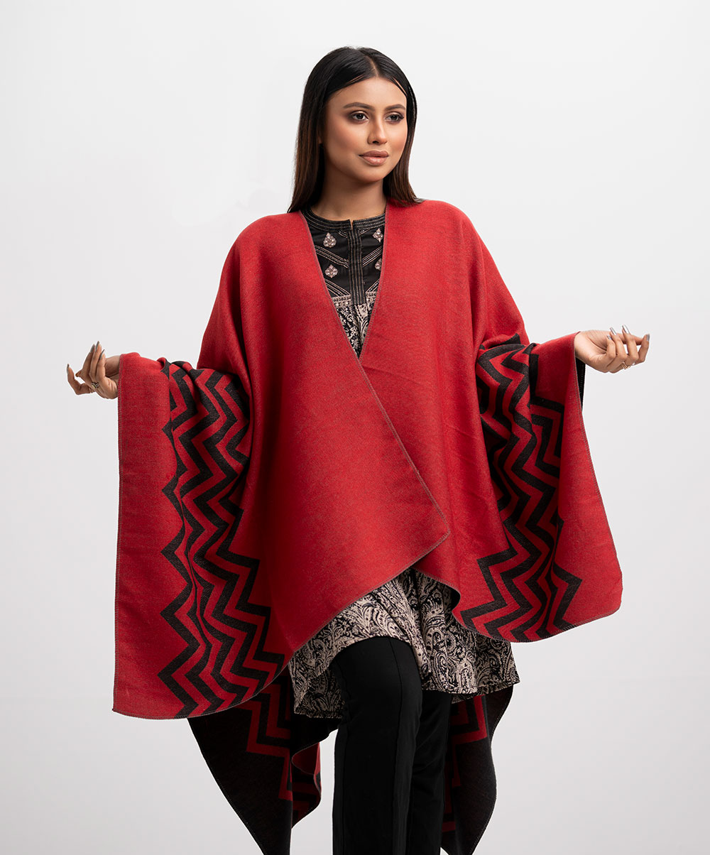 Women’s triangle-shaped chevron pattern winter poncho in woolen fabric.