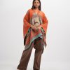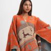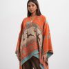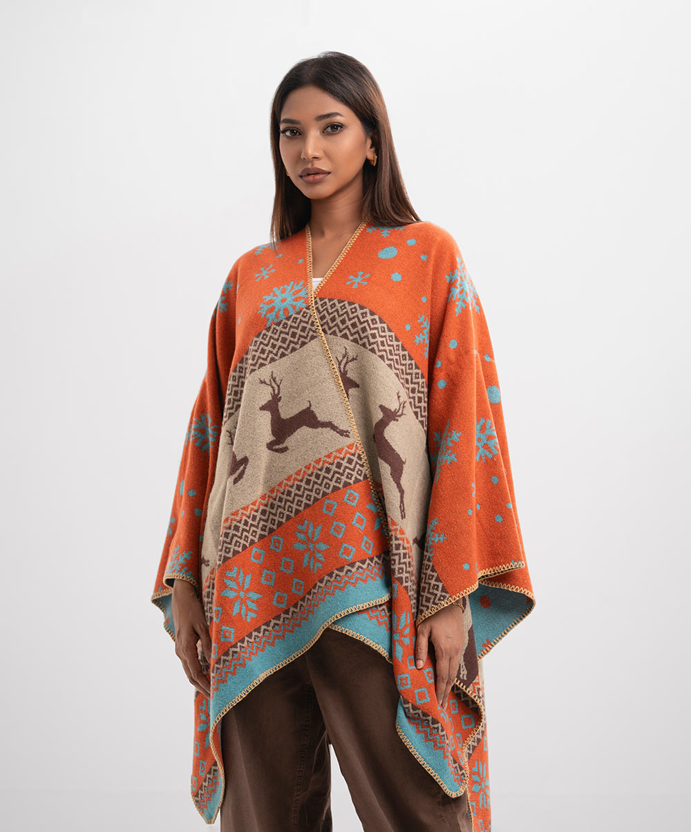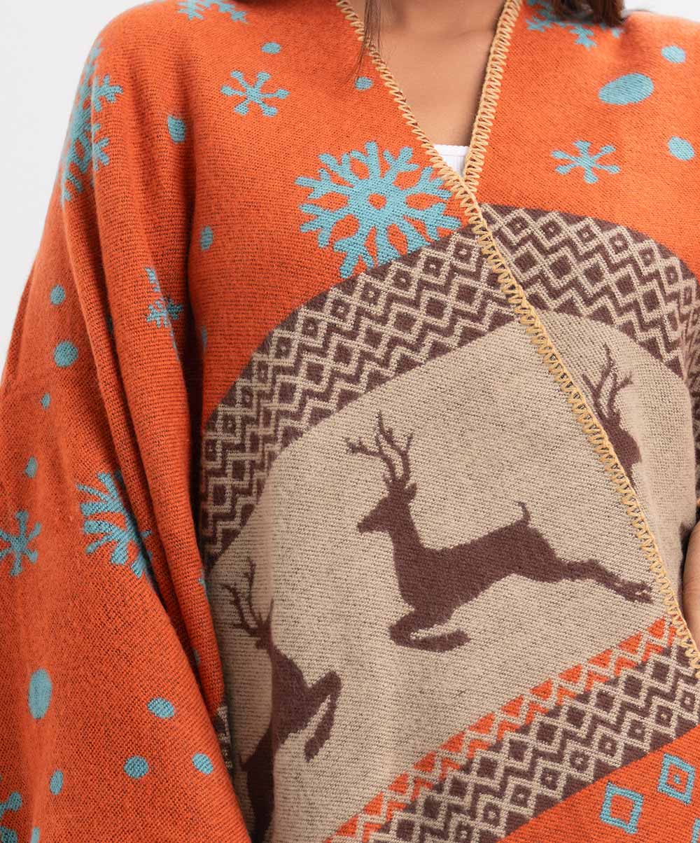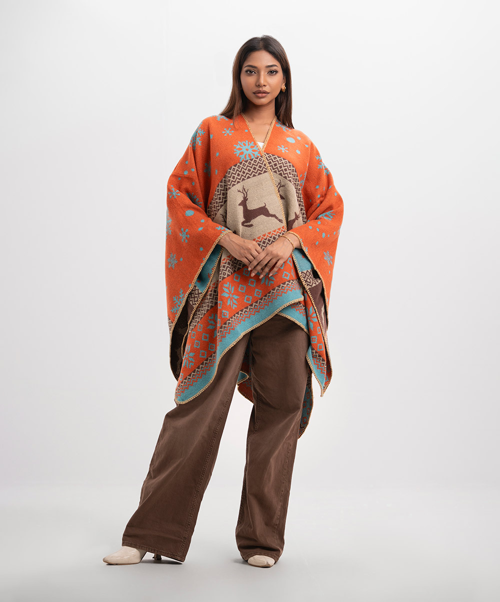 Women’s triangle-shaped winter poncho in woolen fabric.