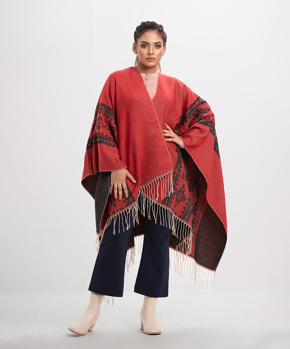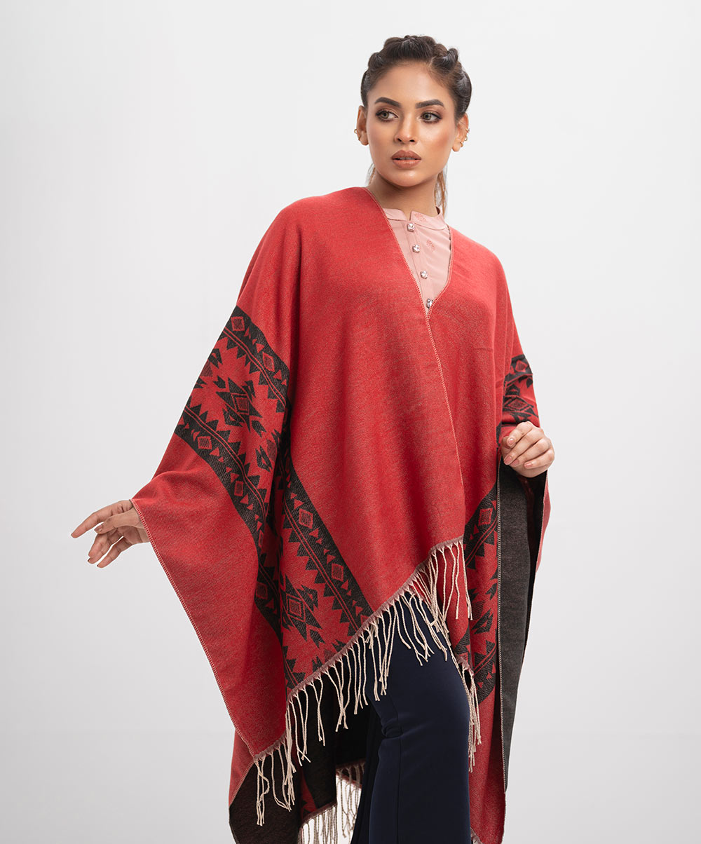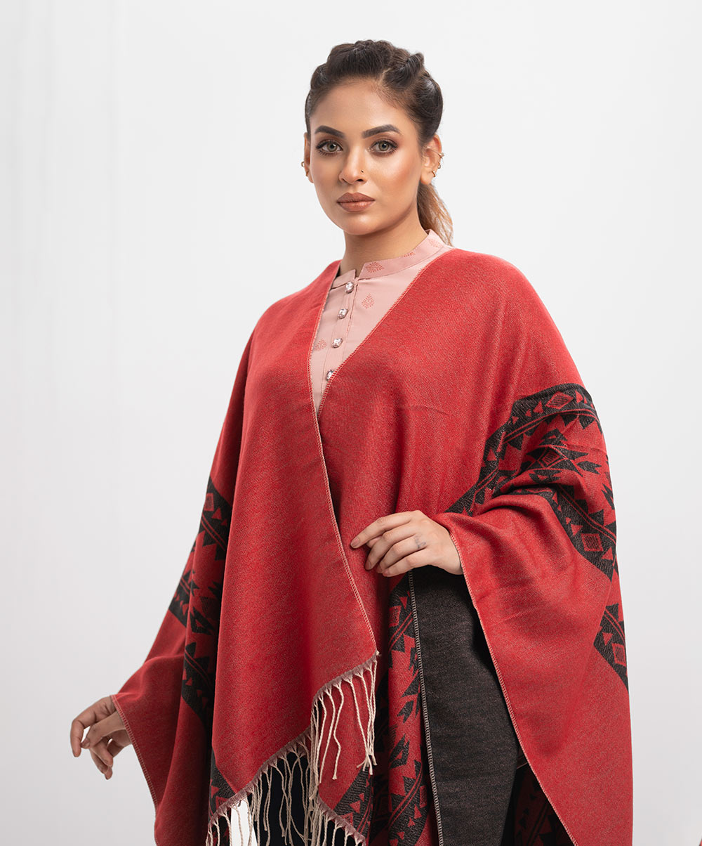 Black & Red Woolen Poncho