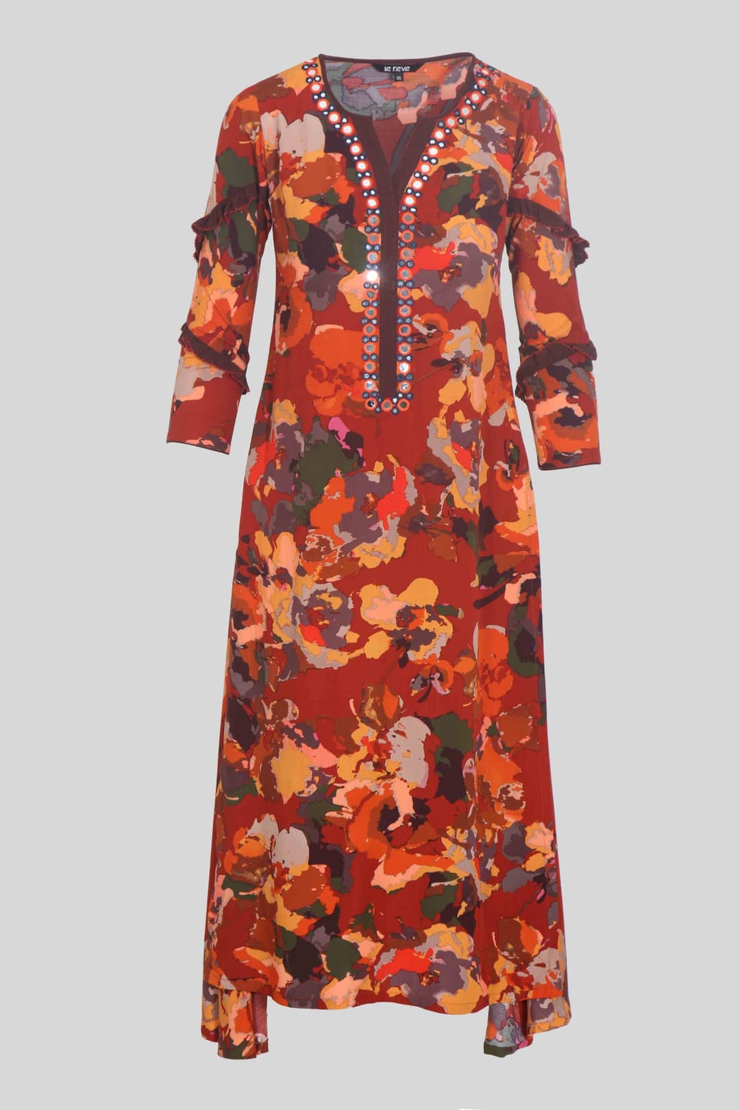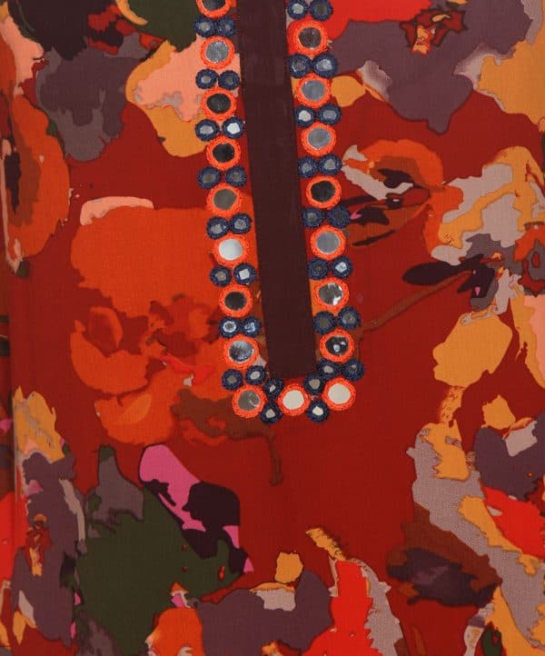 Embrace the trend in floral style with Viscose Tunic styled with glass work.