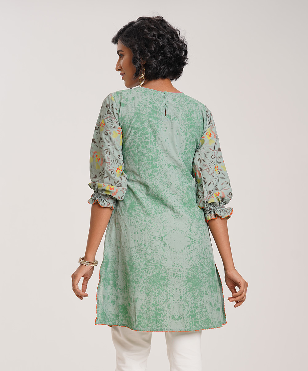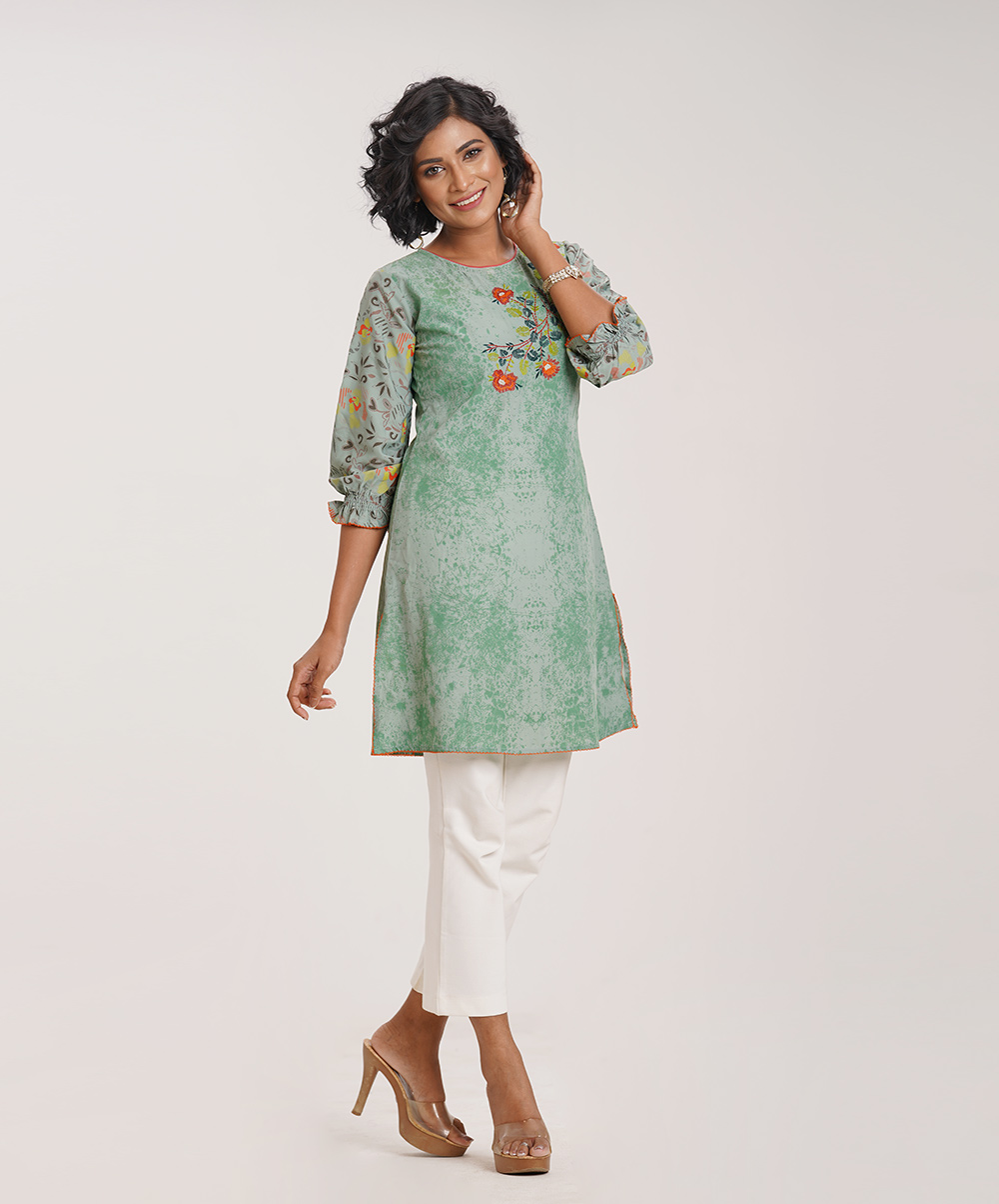 Sea-green floral embroidered Tunic