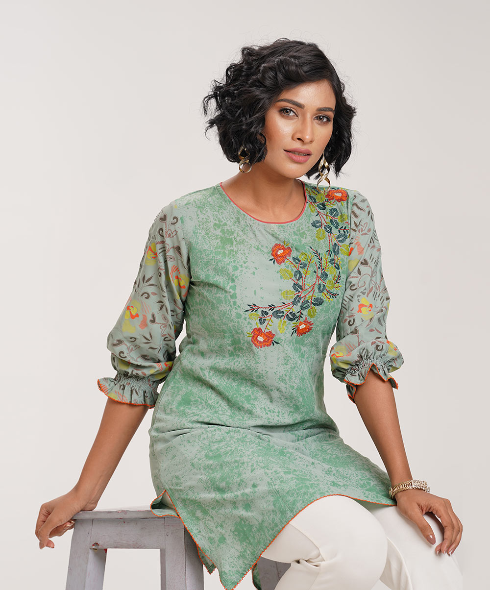 Sea-green floral embroidered Tunic