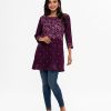 Ladies A-line tunic in georgette with velvet textured fabric. Boat neck and three quarter sleeves.