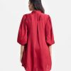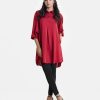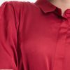 Women’s shirt style tunic in crepe fabric. Classic collar and placket, bishop sleeves.