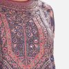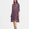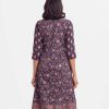 Printed A-line tunic in crepe fabric. Three-quarter sleeved. round neck and karchupi at the front.