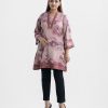 Printed A-line tunic in jacquard fabric. V-neck with attached patch and bell sleeved.