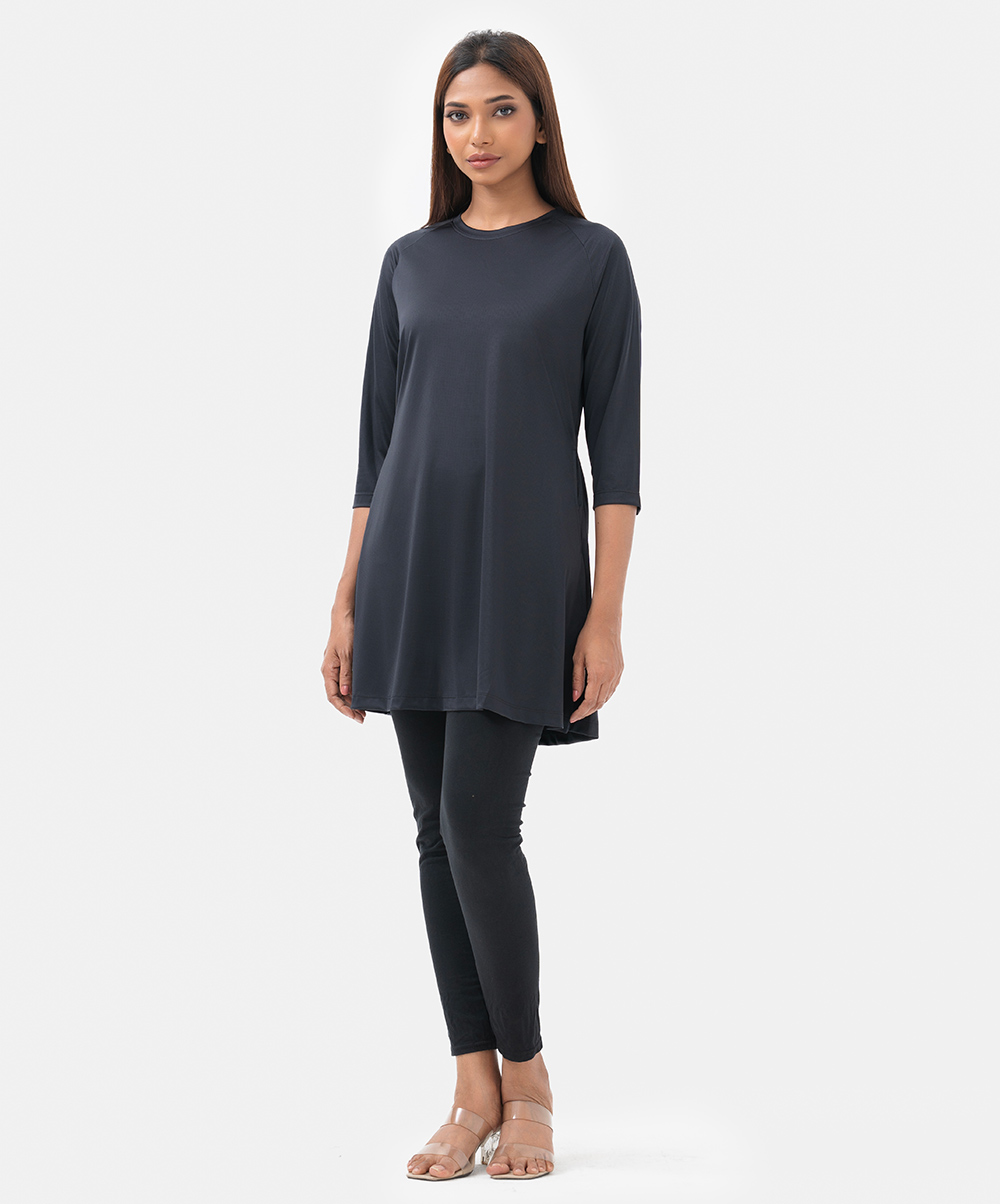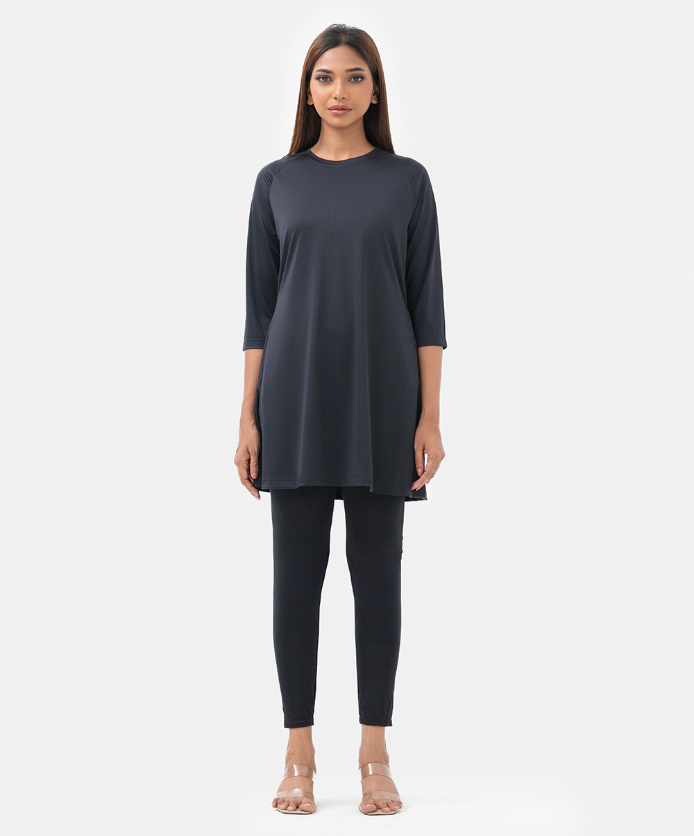 Women’s A-line tunic in dri fit fabric. Wrangler sleeves and crew neck.