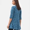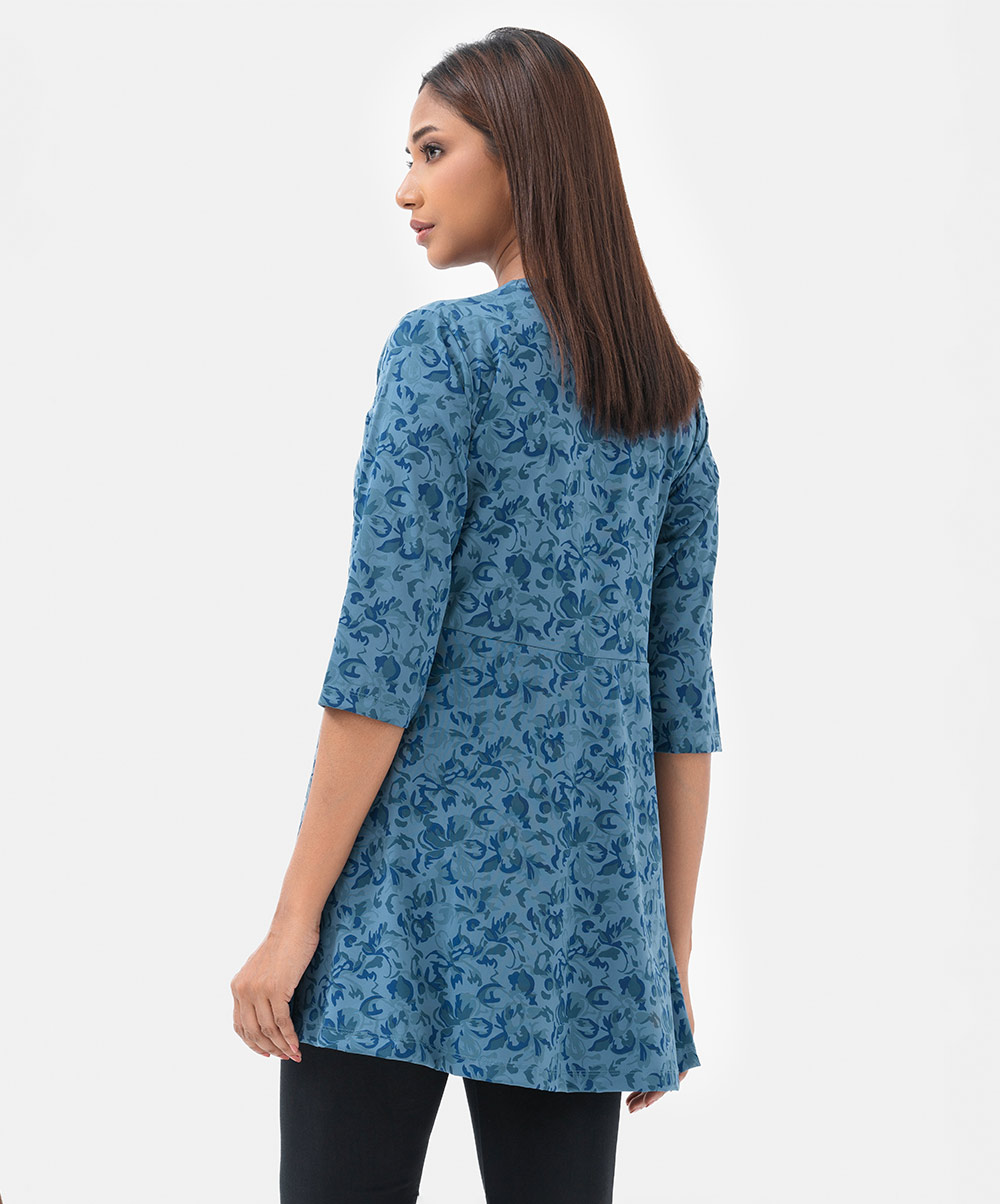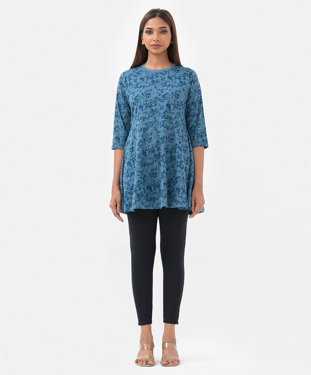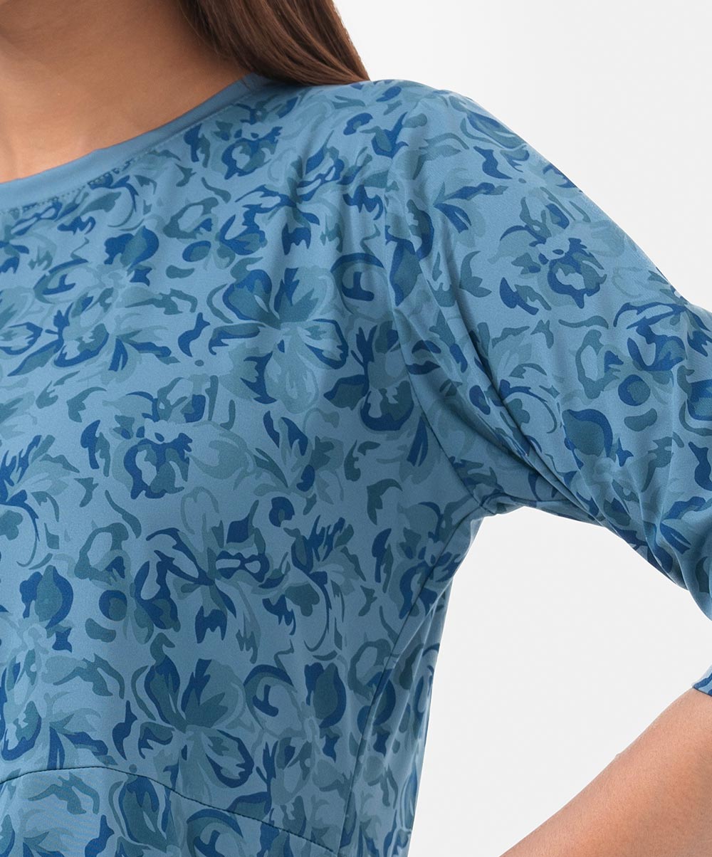 Women’s printed A-line tunic in dri-fit fabric. Round neck and three-quarter sleeved.