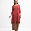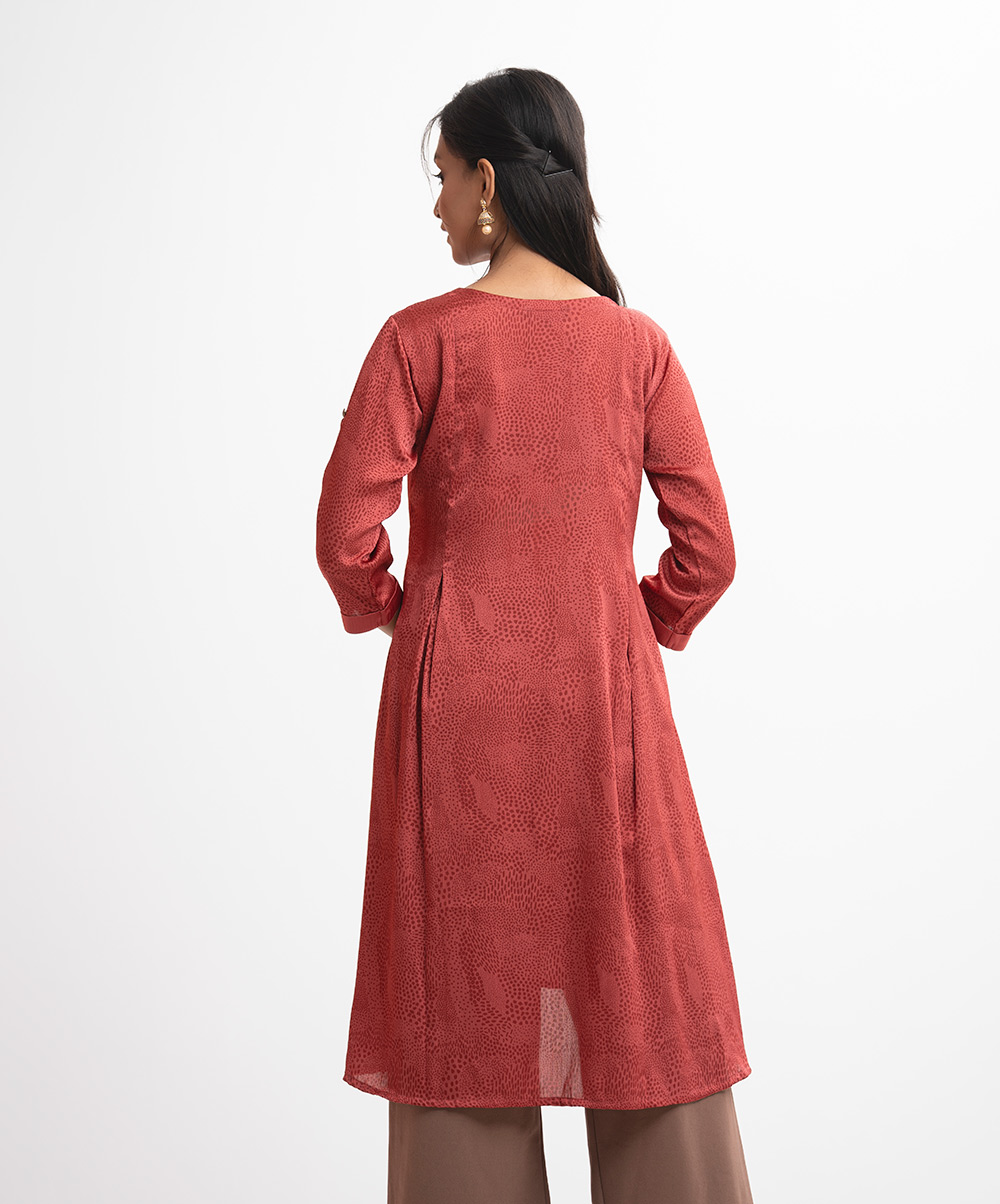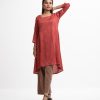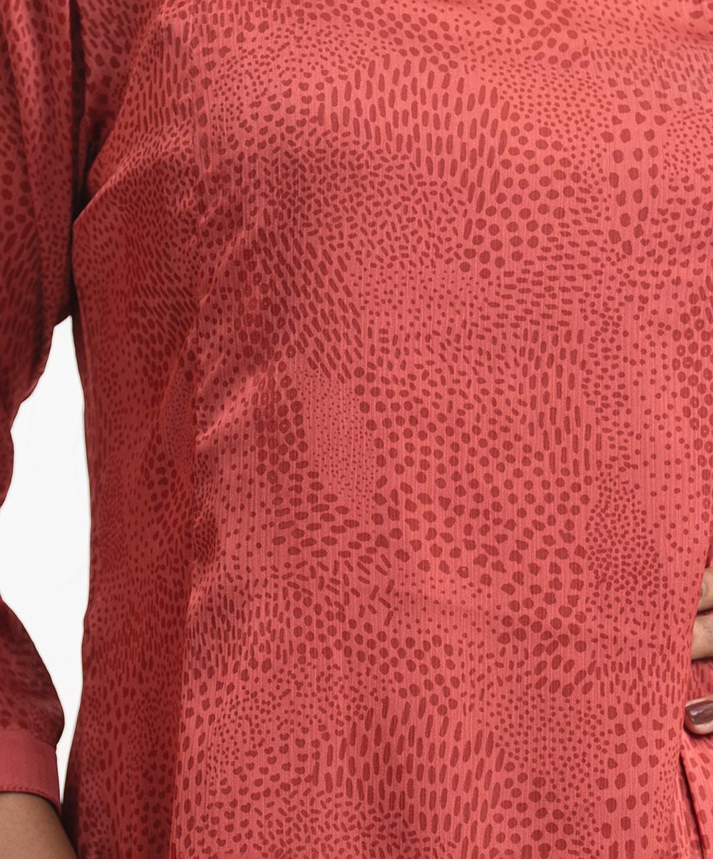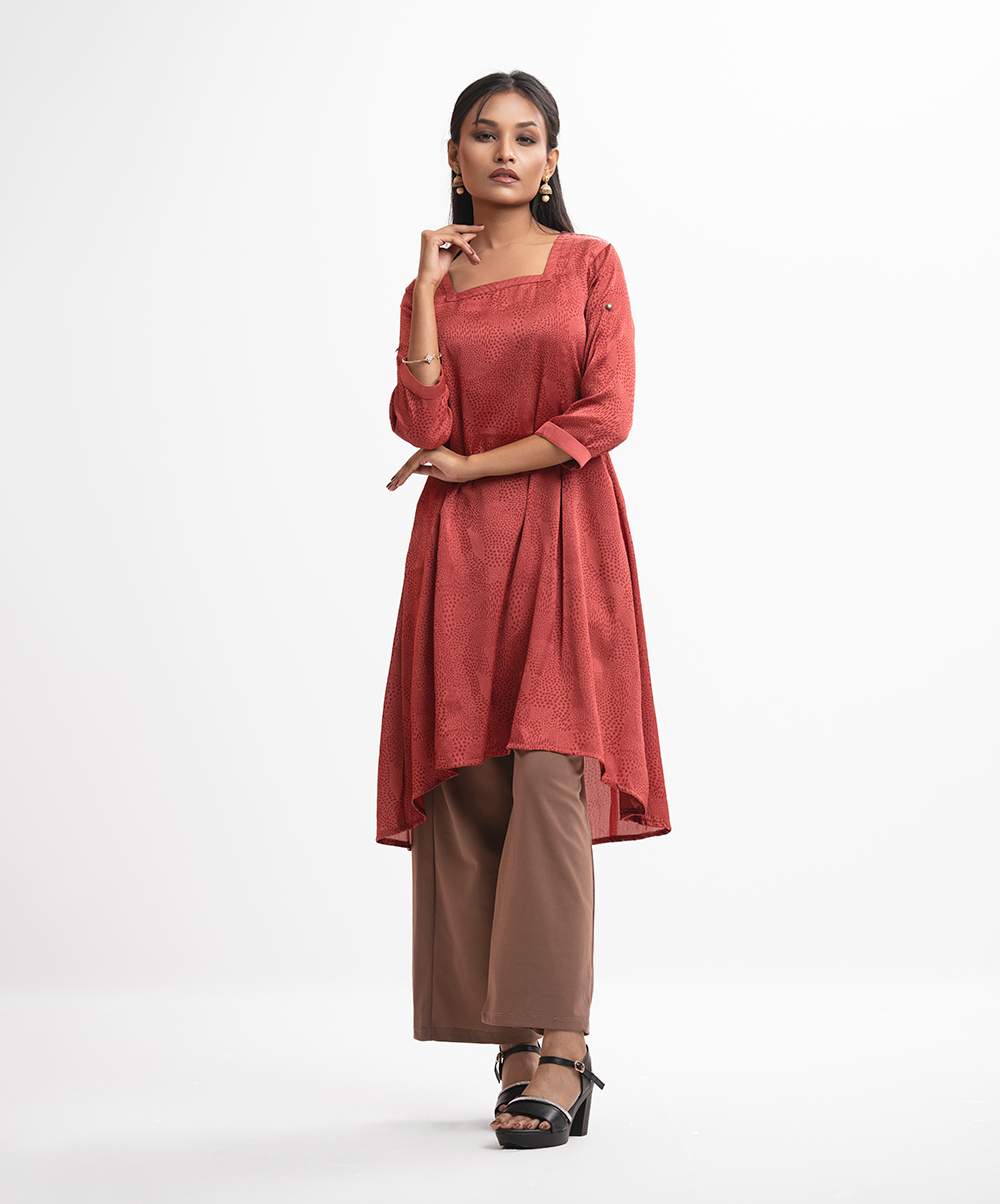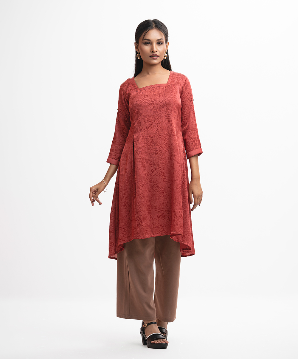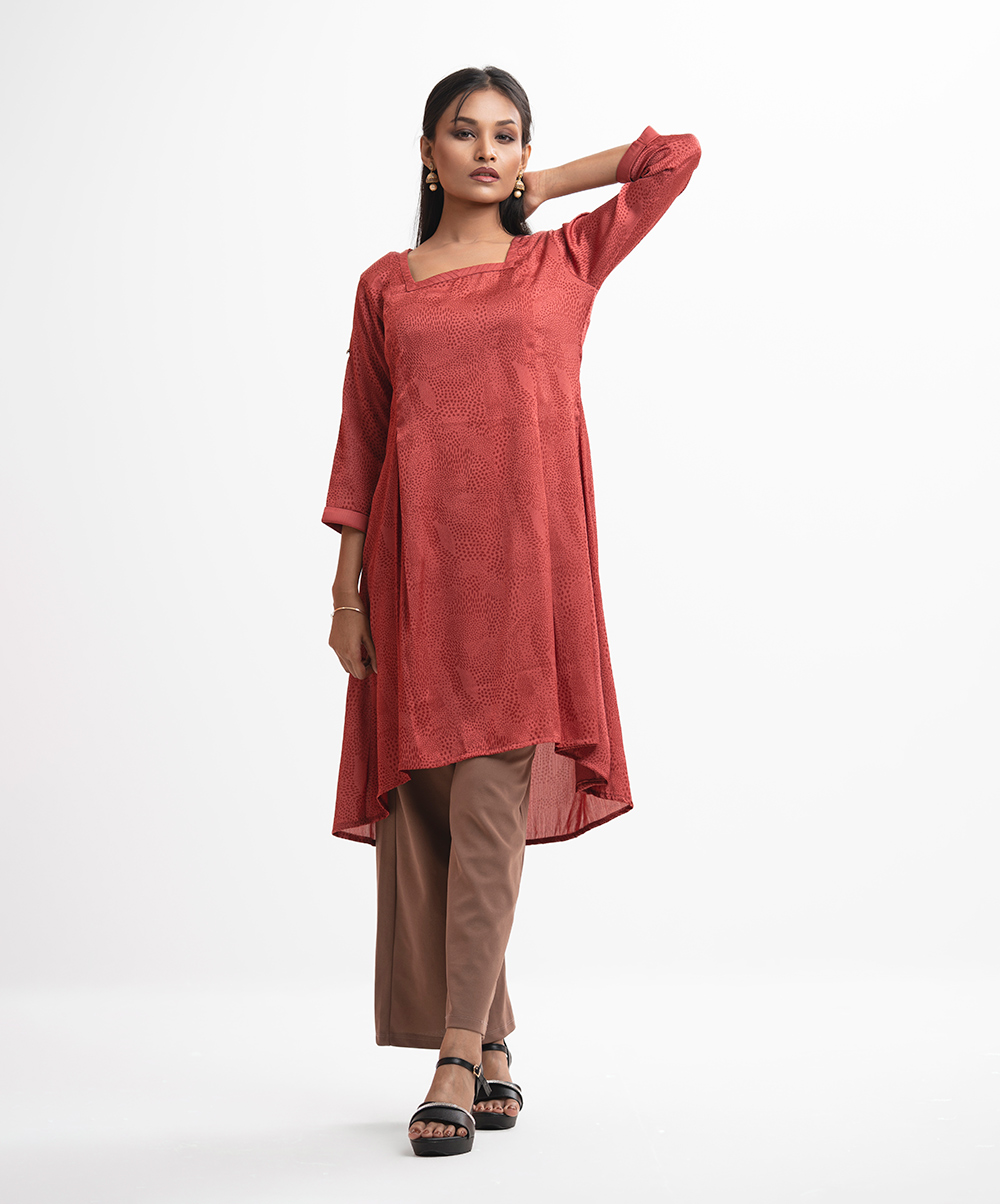 Square-neck, A-line tunic in georgette fabric. Roll-up sleeves, high-low hemline.