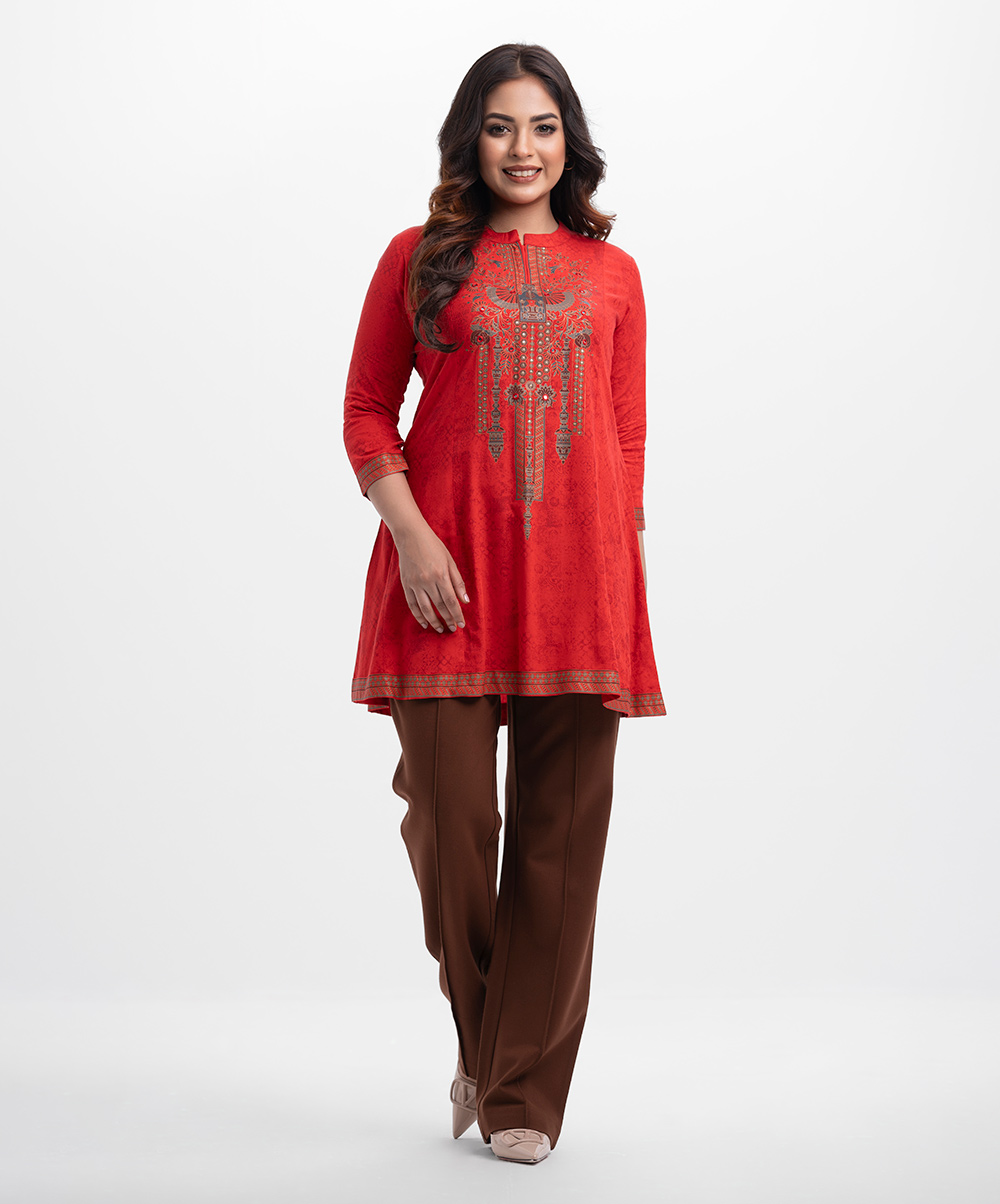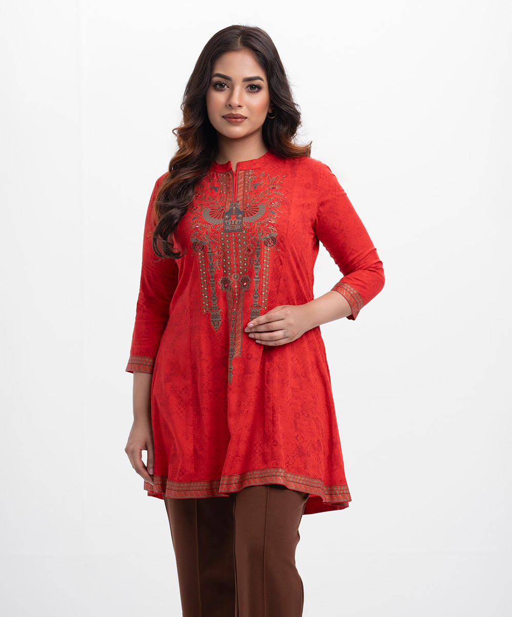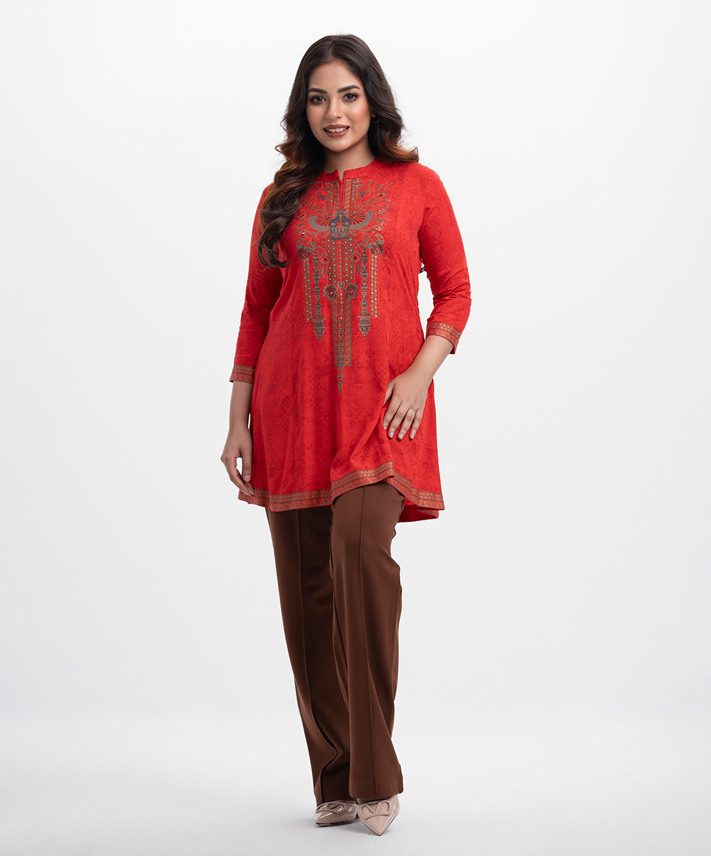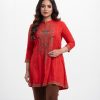 Red Viscose A-line Tunic